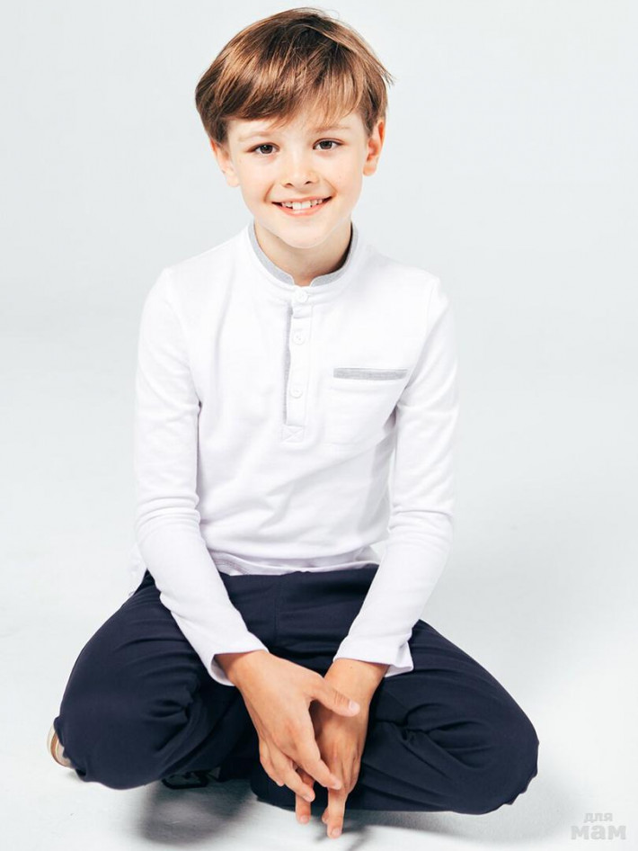 Поло для мальчика белого цвета из хлопковой ткани - пике, обладающей отличными качественными характеристиками. Модель застёгивается на три пуговицы у горловины, воротничок - стойка, рукав длинный, дополнено накладным нагрудным карманом. Поло из хлопкового пике – неотъемлемая часть гардероба юного модника.