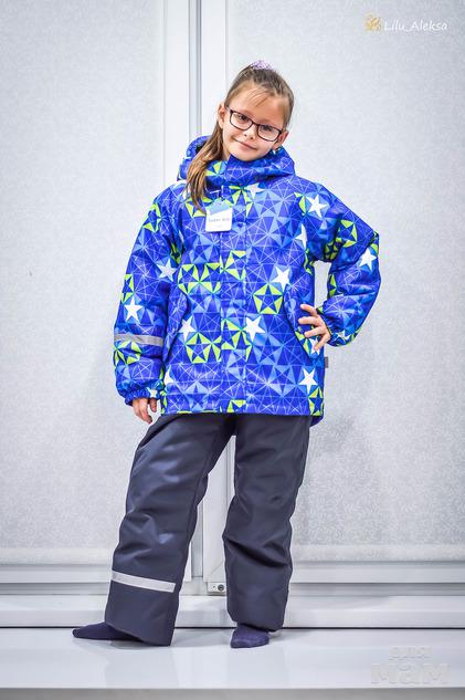Куртка холлофайбер 300 гр, штаны 280гр. Мембранная ткань. Подклад флис. Штаны со съёмными лямками и спинкой. Съемный капюшон. Трикотажные манжеты в рукавах. Снегозащитная резинка внизу штанины. По низу куртки ветрозащитная юбка: препятствует проникновению ветра и снега.