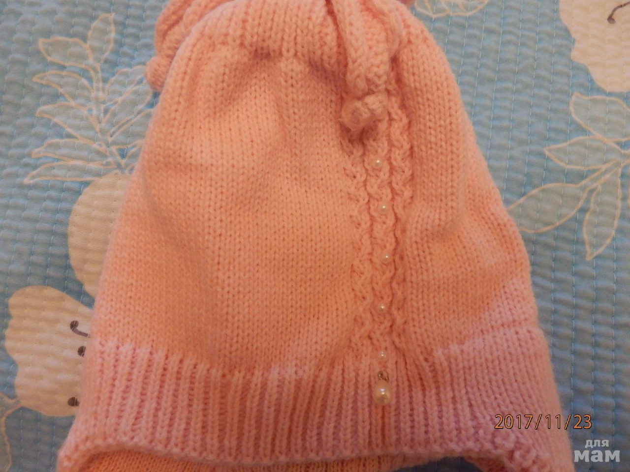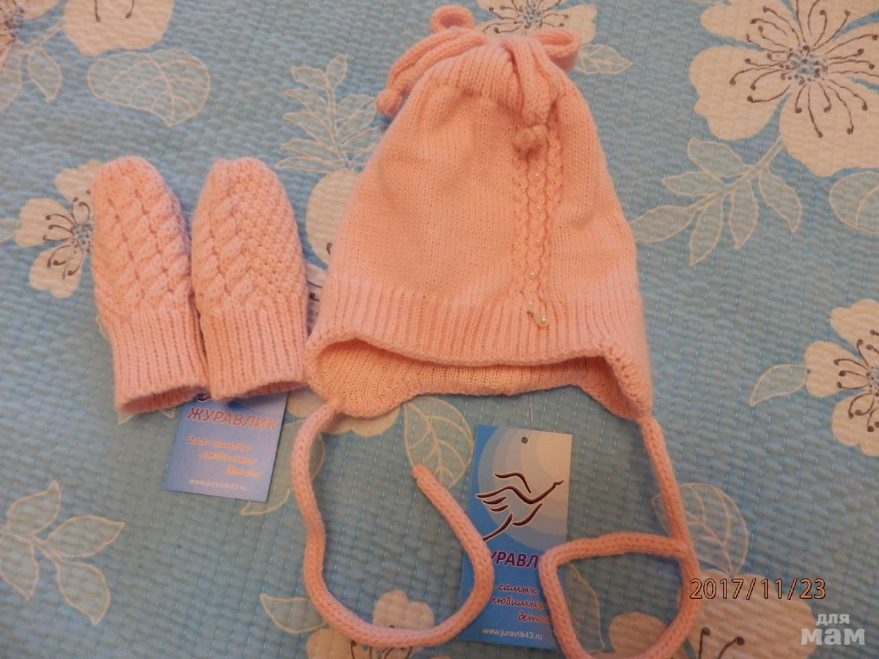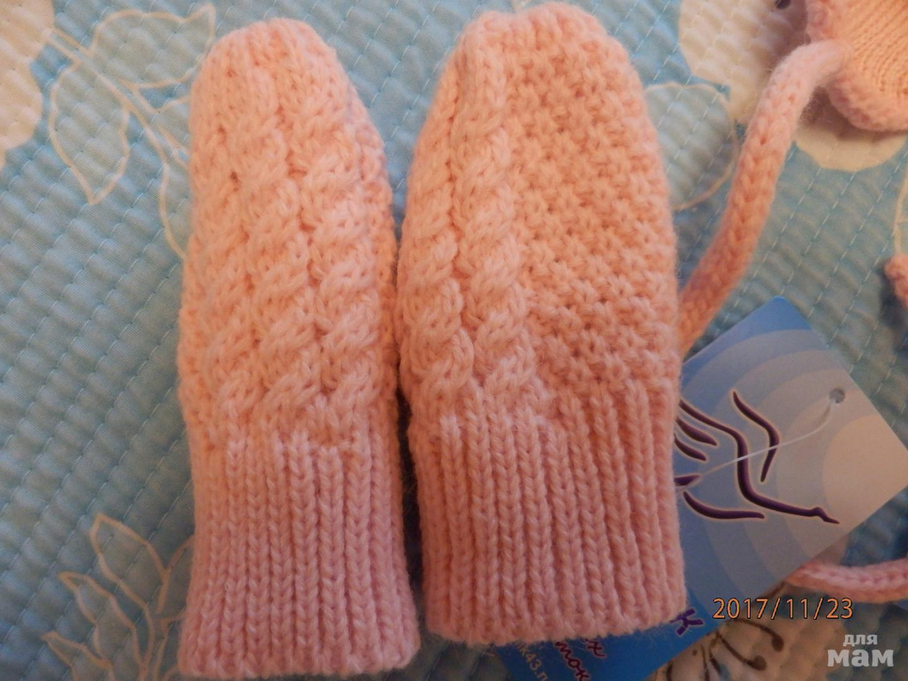 Шапочка "Настенька" на х/б подкладе. И варежки "Косички".