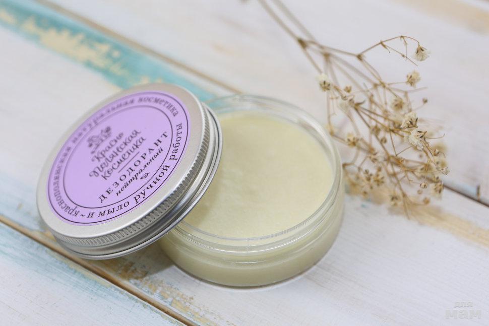 Пищевая сода оказывает дезодорирующий эффект и устраняет неприятный запах. Кукурузный крахмал нежно абсорбирует излишнюю влагу, защищает и подсушивает кожу. Масло ши питает ее и оказывает противовоспалительное действие. Пчелиный воск оказывает комплексное воздействие, в том числе излечивает раздражения в зоне нежной кожи подмышечных впадин. Он создает невесомую защитную пленку, которая защищает кожу, не забивая ее поры. Аллантоин (вытяжка из лекарственной травы окопник) обладает сильнейшими дезинфицирующими свойствами.
