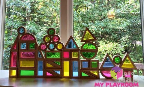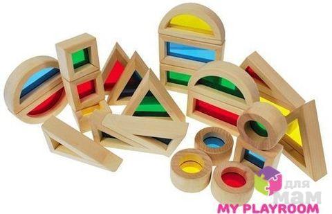 Деревянные радужные блоки – это многофункциональный конструктор. Такая игрушка познакомит малыша с формами и цветами, а также даст представление о проникающей способности света. С помощью "Rainbow blocks" можно создавать цветные тени – свет проникает сквозь цветные акриловые вставки и дает впечатляющий эффект. Играйте с таким конструктором в солнечную погоду или на световом столике.