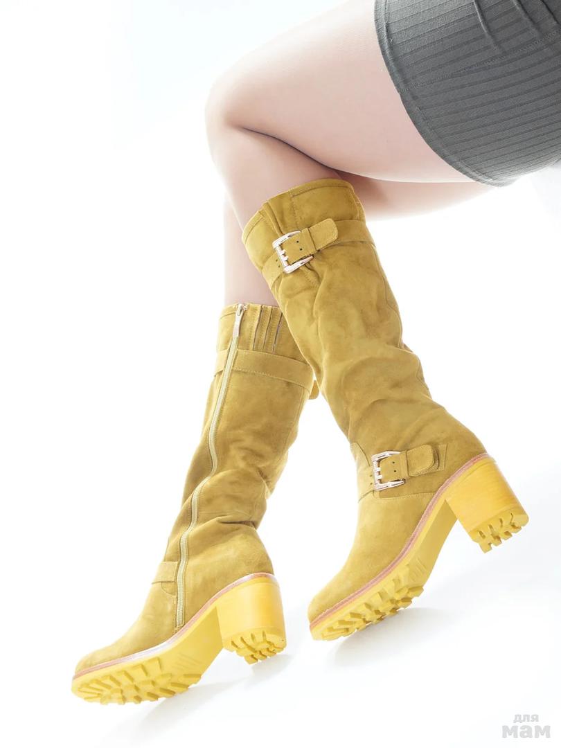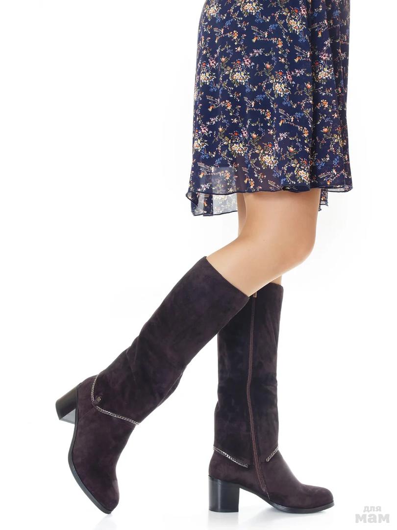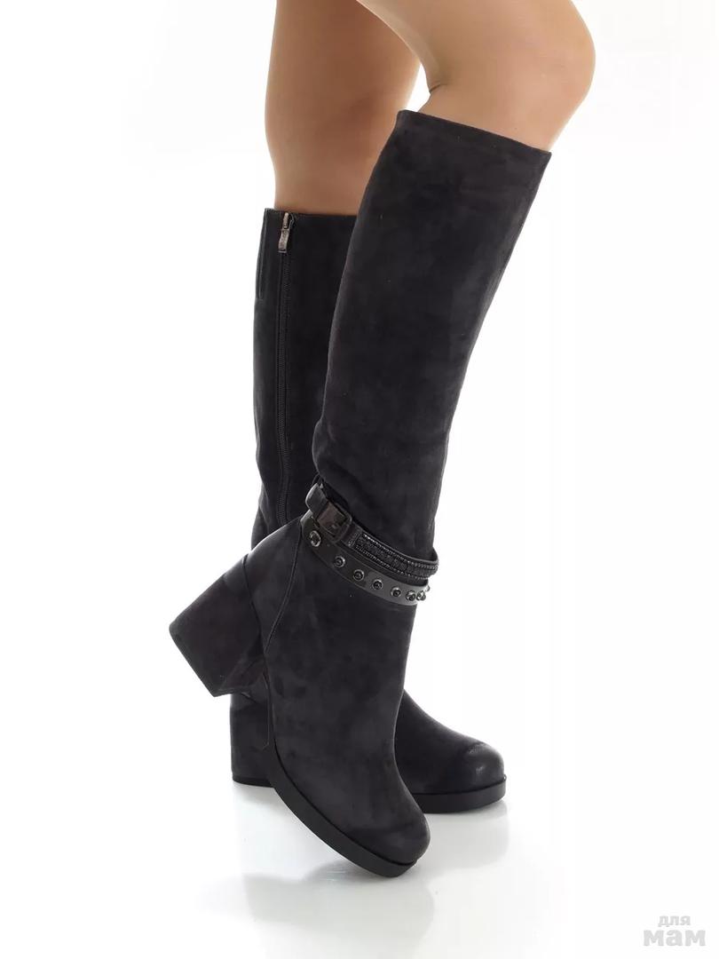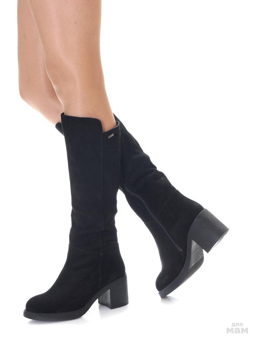 Сапоги демисезонние артикул: 2016-1438-216 2800+15% Натуральная замша. Подкладка: байка. Каблук 6 см, высота 34 см, объем голенища 32 см (в 37 в размере).