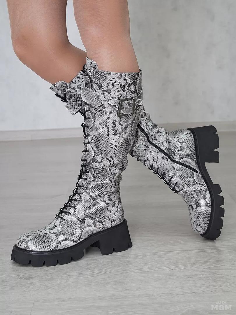 Полусапоги демисезонние артикул: TURKEY 780-600 2350+15% Натуральная кожа/принт/лак. Подкладка: флис. Каблук 8 см, высота 11 см. В размер!