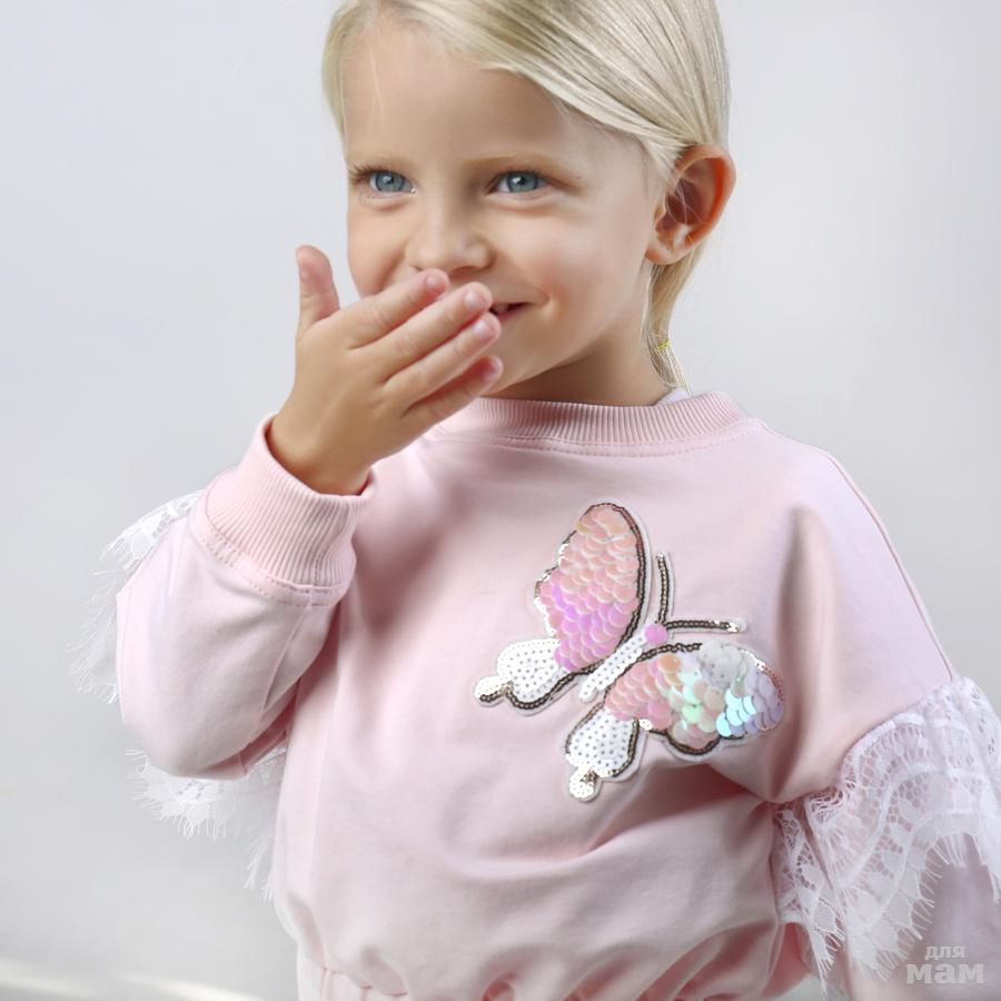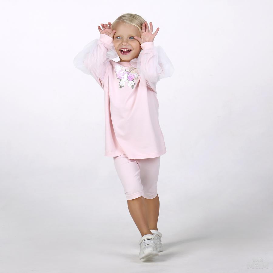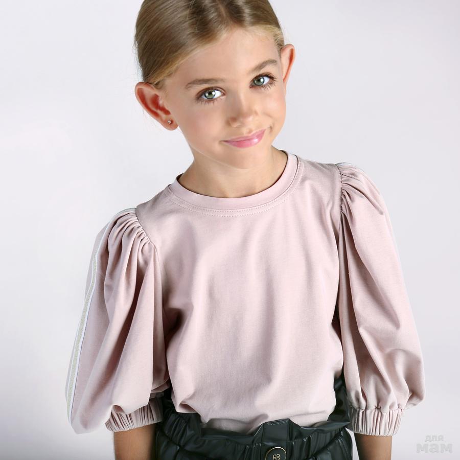 2159-1 футболка обьемный рукав 3\4 110-134 пудра 5% лайкра 5% вискоза 90% хлопок цена 15,95 $ +орг