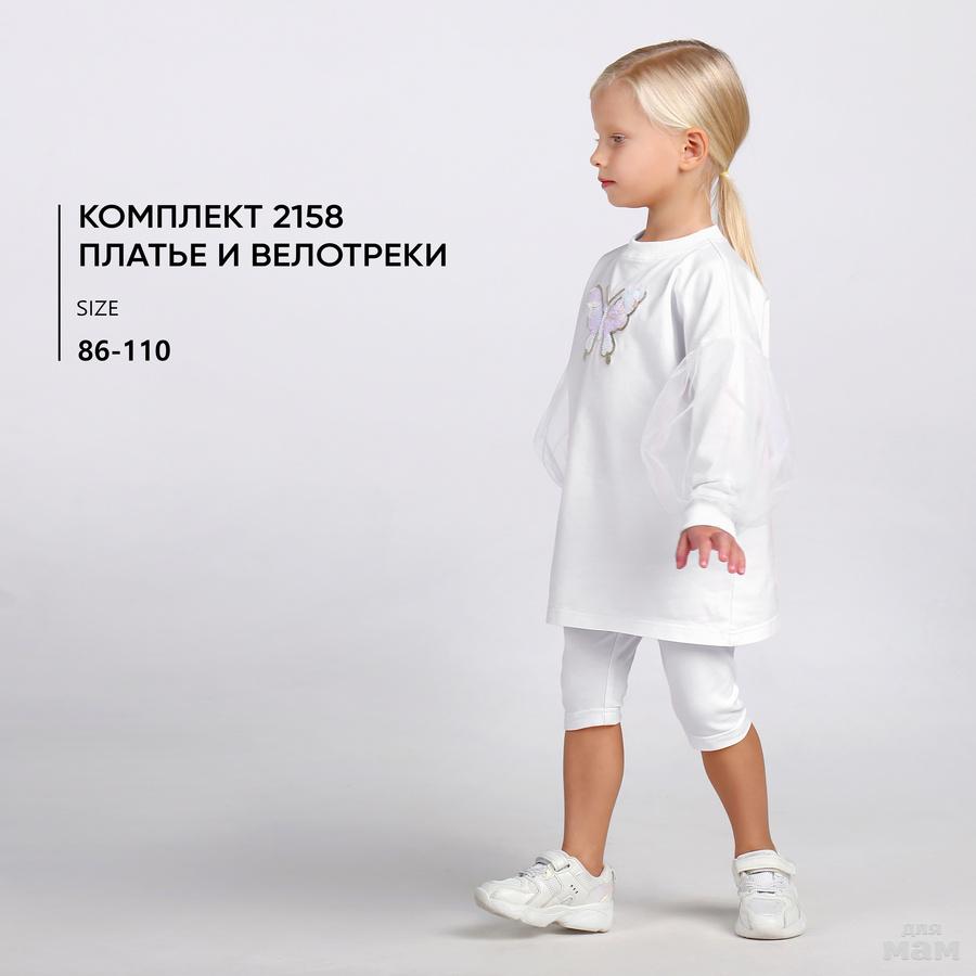 2158 комплект: платье+велотреки трикотаж 86-110 белый 5% лайкра 5% вискоза 90% хлопок цена 27,55 $ +орг