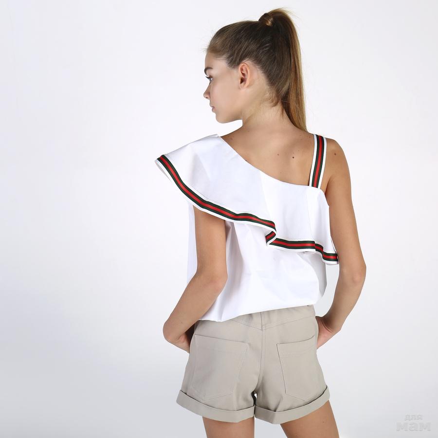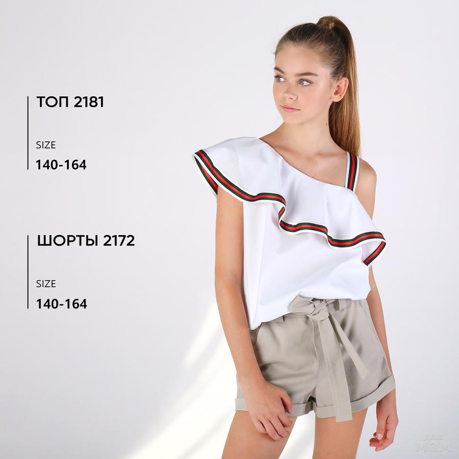 2182 топ трикотаж, оборка котон 140-164 белый 5% лайкра 5% вискоза 90% хлопок цена 23,2 $ +орг