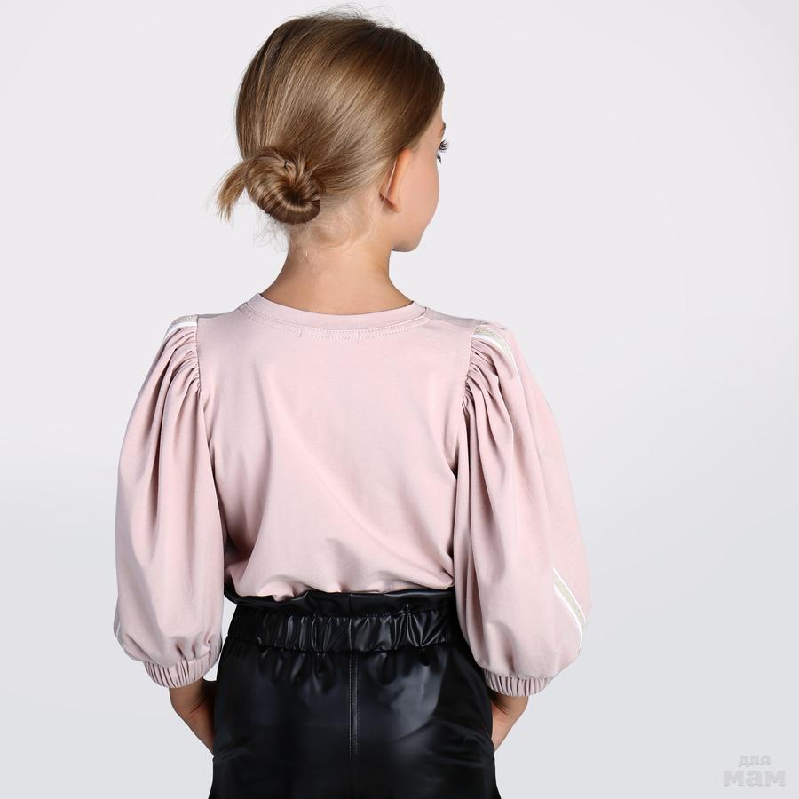 2159-1 футболка обьемный рукав 3\4 140-164 пудра 5% лайкра 5% вискоза 90% хлопок цена 17,4 $ +орг