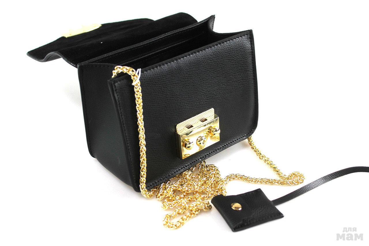 Сумка на цепочке артикул: 11026 BLACK 1500+15% Верх: натуральная кожа. Подкладка: текстиль. Отделения: 1 основное. В комплекте плечевой ремень. Размеры: 17*8*13.