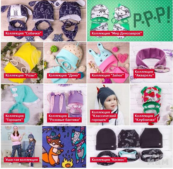 Головные уборы для всей семьи: Шапки вязаные с завязками,Наборы: Шапка+манишка вязаные с помпоном, Шапки вязаные с помпоном,Шапки с ушками, Шапки вязаные SPORT, Наборы: Шапка с ушками+снуд,Наборы: Шапка лопатой+снуд,Шапки-шлем вязаные, Шапки из двойного трикотажа, Банданы трикотажные,Панамы с полями,Повязки трикотажные однотонные,Кепки с козырьком,Повязки с козырьком,Косынки с козырьком,Фуражки с бантом.