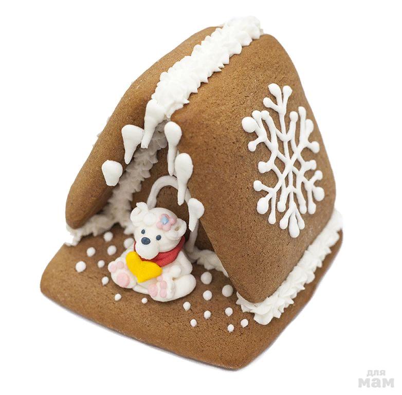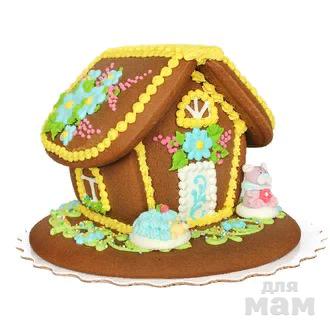 Имбирно-медовый домик. Расписан вручную сахарной глазурью. Декорирован сахарной фигуркой.