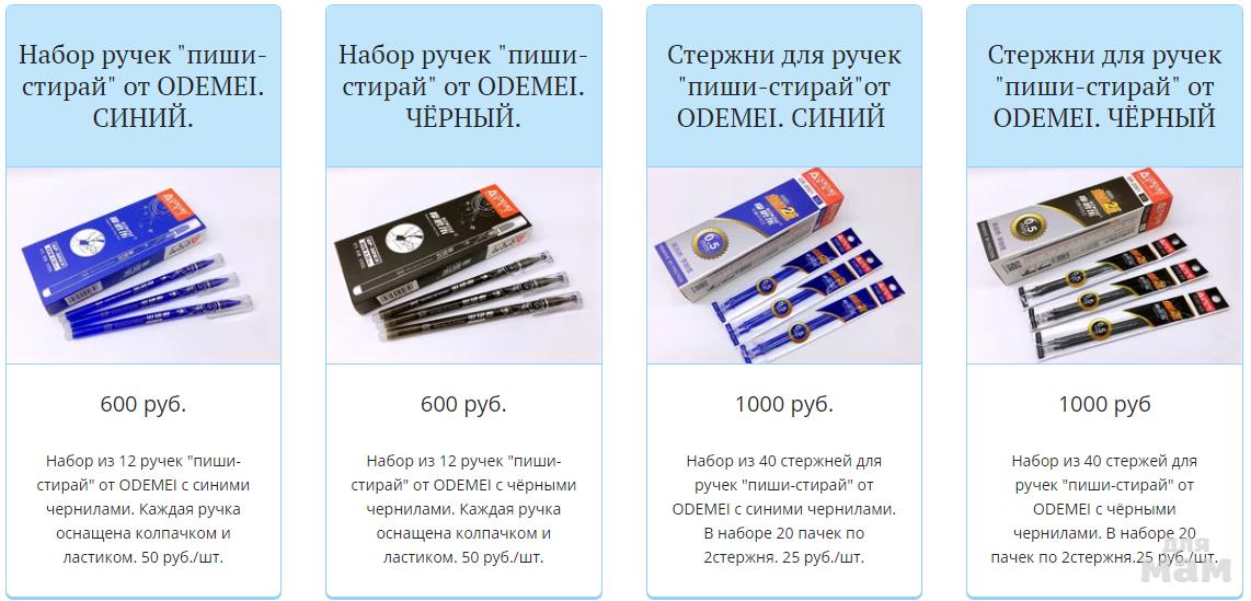 Любимые ручки школьников и их родителей для сложных домашних работ и кроссвордов. Приходилось ли вам заставлять своего ребенка переделывать домашнее задание из-за нескольких исправлений или ошибок? Или заполняя какой-либо бланк или анкету, мы сами совершали ошибку, и нужно было начинать всё сначала? В такие моменты непроизвольно вспоминаешь про карандаш или компьютер, где исправить написанное куда проще… К счастью, в таких ситуациях теперь нам могут помочь ручки "пиши-стирай" от ODEMEI ! Они позволяют вносить исправления в уже написанный текст. Ручка "пиши-стирай" от ODEMEI станет отличным помощником в учёбе, при составлении планов, ведении дневника и написании рукописей, где одновременно требуется чистота и свободный полёт мысли, не омрачённый долгими исправлениями.