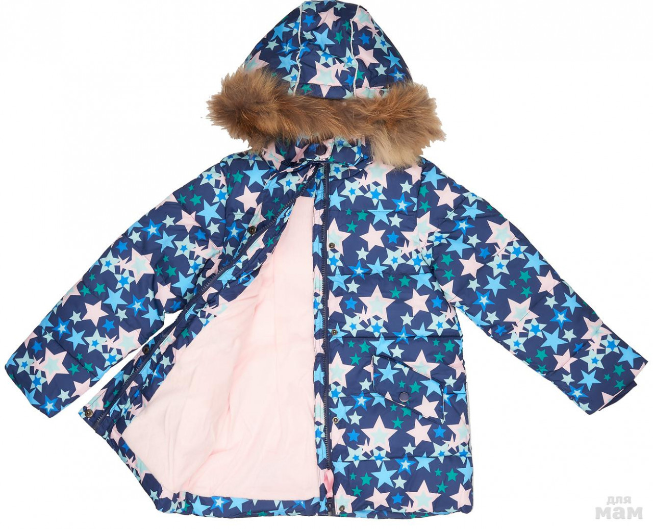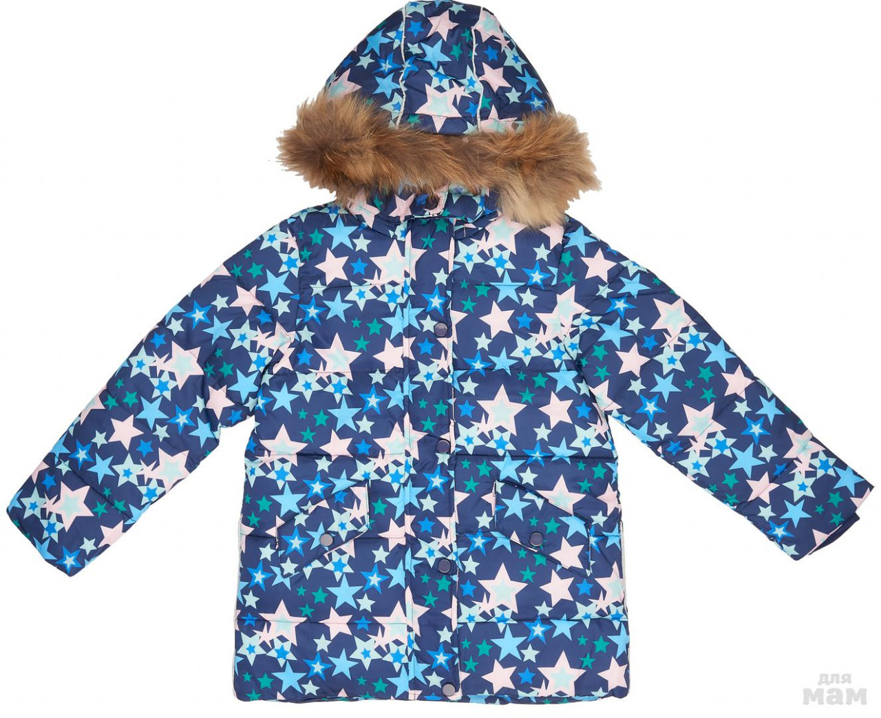 Капюшон отделан съемным натуральным мехом.
