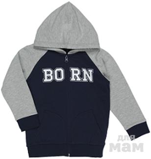 Свитшот на молнии с капюшоном, на полочке накладные карманы и принт с лого, в капюшон продет шнурок.