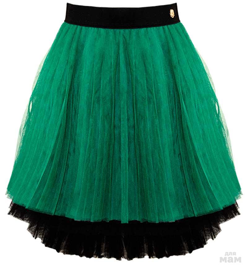 Юбка-пачка, модель асимметричная, спереди короче, сзади длиннее, выполнена из пяти слоев тонкой сетки на тонком х/б подкладе в цвет, притачной пояс-резинка с нашивкой лого.