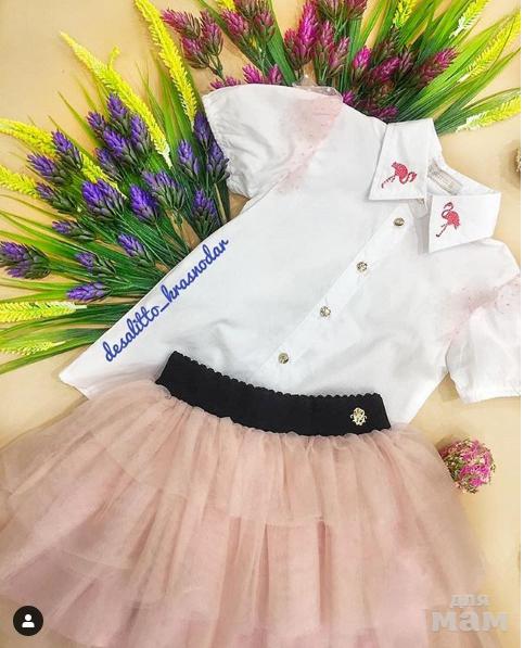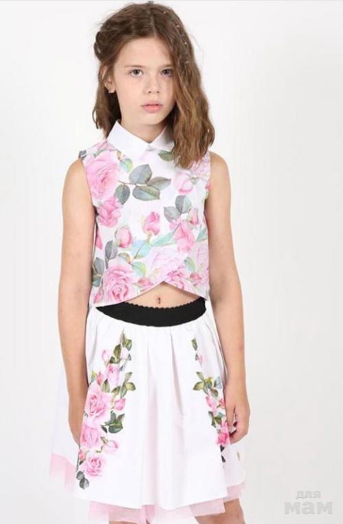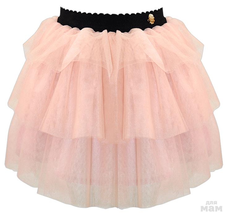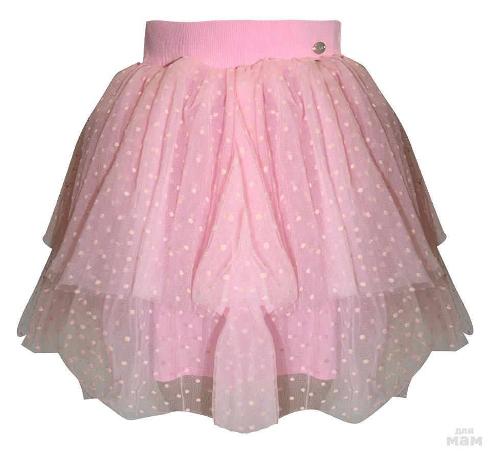 Юбка для девочек, модель выполнена из сатина, спереди и сзади водный принт цветы, пояс на резинке, на поясе нашивка лого, пышный подъюбник из трехслойной розовой сетки и хлопкового подклада.