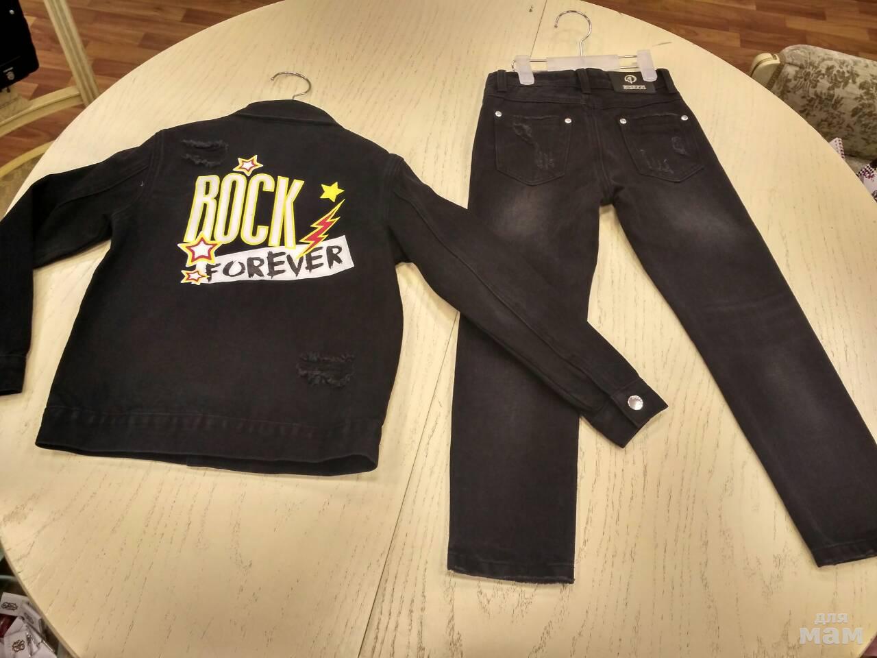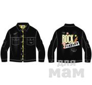 Джинсовая куртка для мальчиков. Воротник отложной. На полочке нашивные карманы и функциональная планка с пуговицами, нашивка лого внизу. На спинке принт надпись ROCK forever (накат). Декоративные элементы рваные царапки спереди и сзади изделия. Притачной пояс по низу изделия. Манжеты рукавов с застежкой на пуговицы. Материал не тянется.