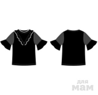 Футболка трикотажная для девочек, по горловине и низу изделия притачная рибана, рукава комбинированные: из трикотажа с отделкой из плиссированного крепа,