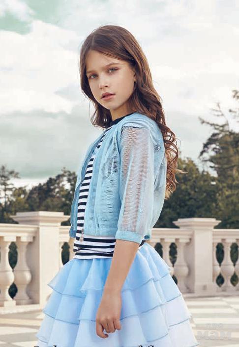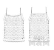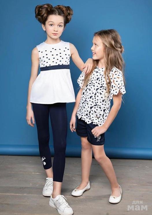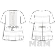 Блузка для девочек из комбинированной ткани: полочки из трикотажа, рукава из сетки на кулиске из рапсовой ленты. По горловине притачная трикотажная рибана, по низу полочки слева - пришивное лого.