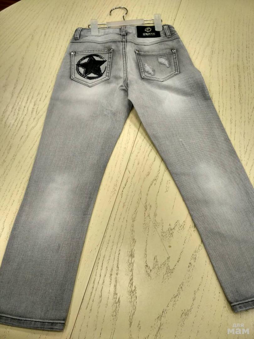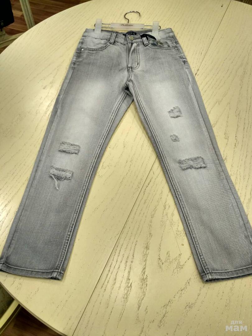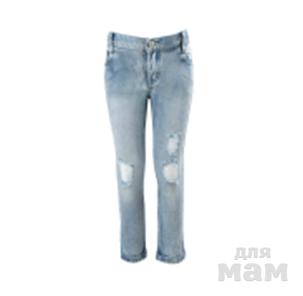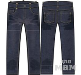 Джинсы стрейч для девочек, брючины слегка зауженные к коленям и немного расклешенные внизу, по низу брючин бахрома. Застежка - молния и металлическая пуговица. Есть шлевки под ремень. Спереди два кармана с отрезным бочком, сзади настрочные карманы и нашивка-лого. В поясе есть утяжка.
