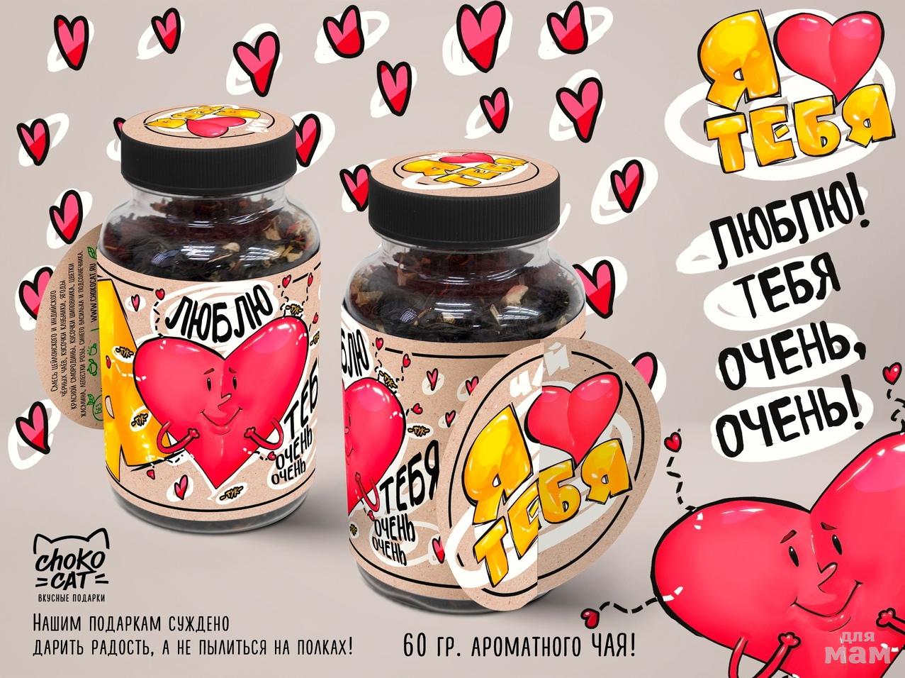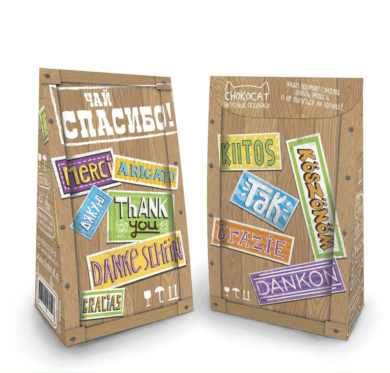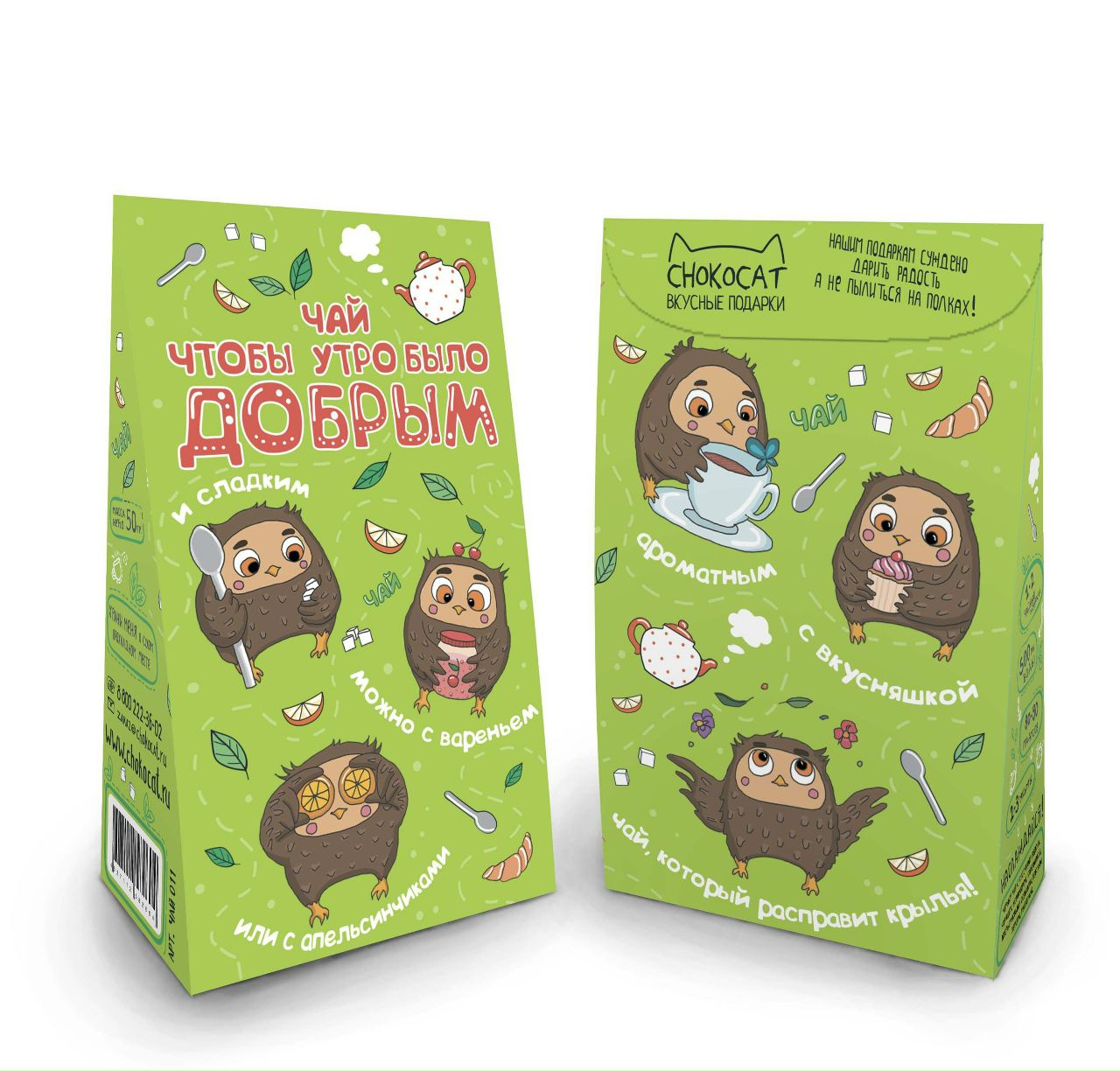 Чай в удобной, дизайнерской упаковке. На обратной стороне тематические пожелания. Внутри отборные сорта крупнолистового черного или зеленого чая с натуральными добавками.
