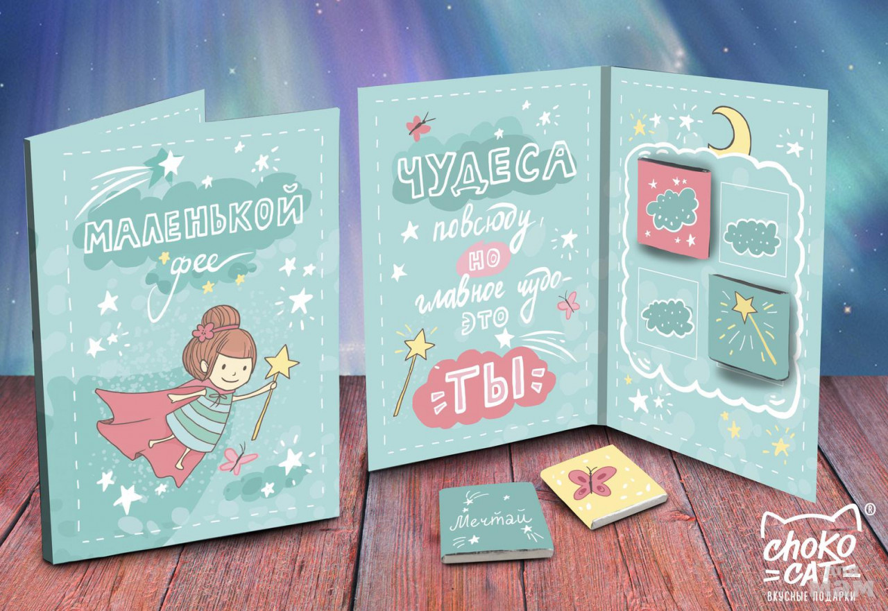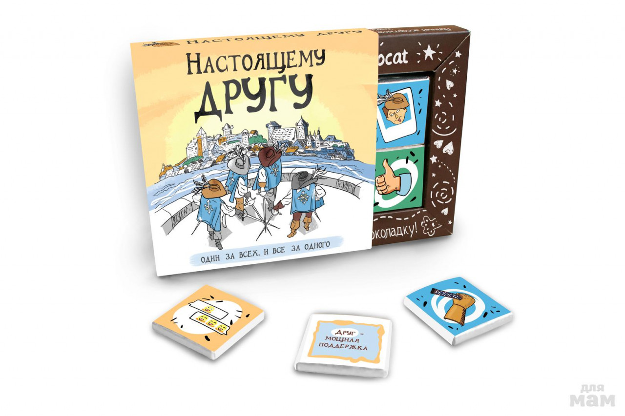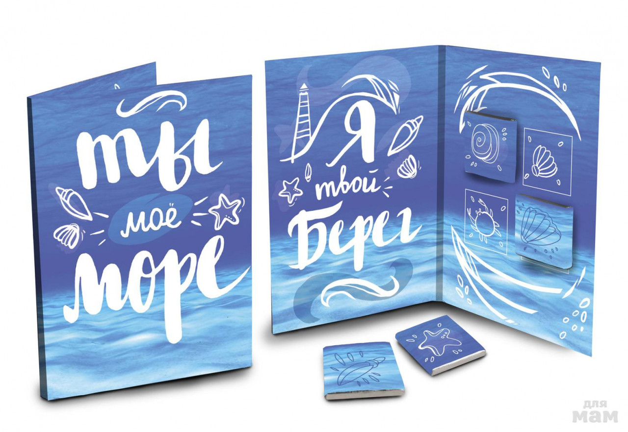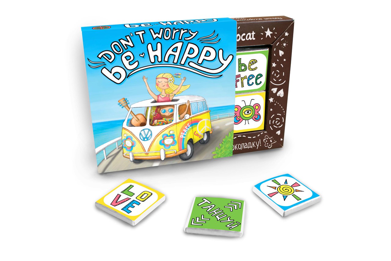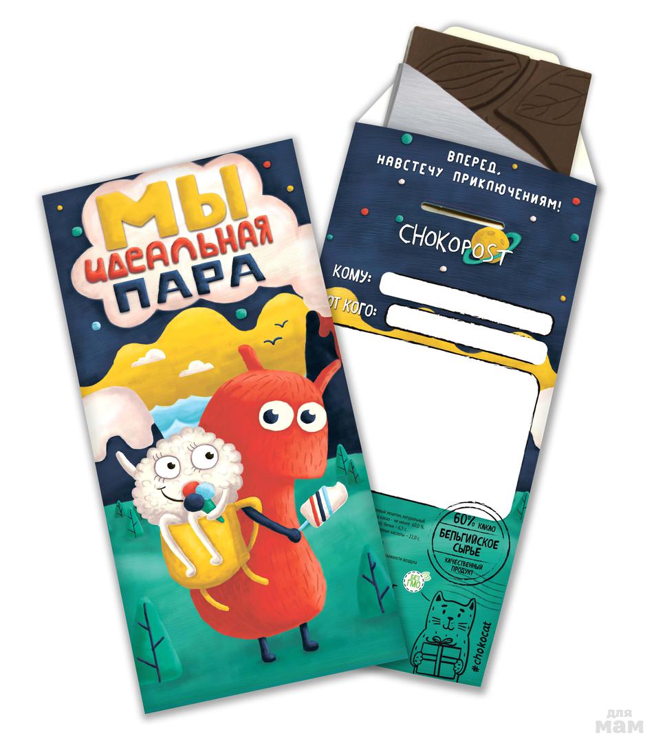 Яркие и современные открытки, внутри которых 4 молочных шоколадки по 5 грамм. Каждая обернута в этикетку с оригинальной иллюстрацией. 19 видов. Молочный шоколад, 36,8% какао. Размер: 21 х 14,8 см. Вес: 20 г. Срок годности: 18 месяцев. Состав: Какао тертое, какао-масло, сахар, молоко сухое, эмульгатор лецитин Е322, ароматизатор "Ванилин" идентичный натуральному.