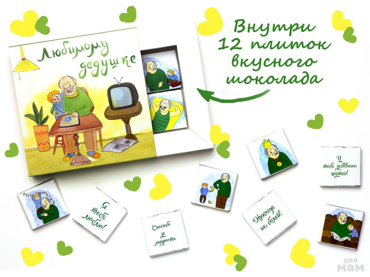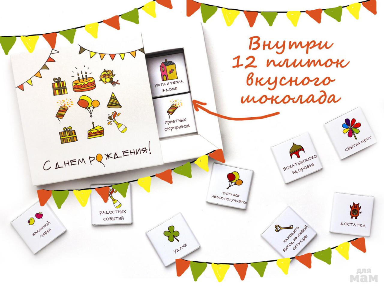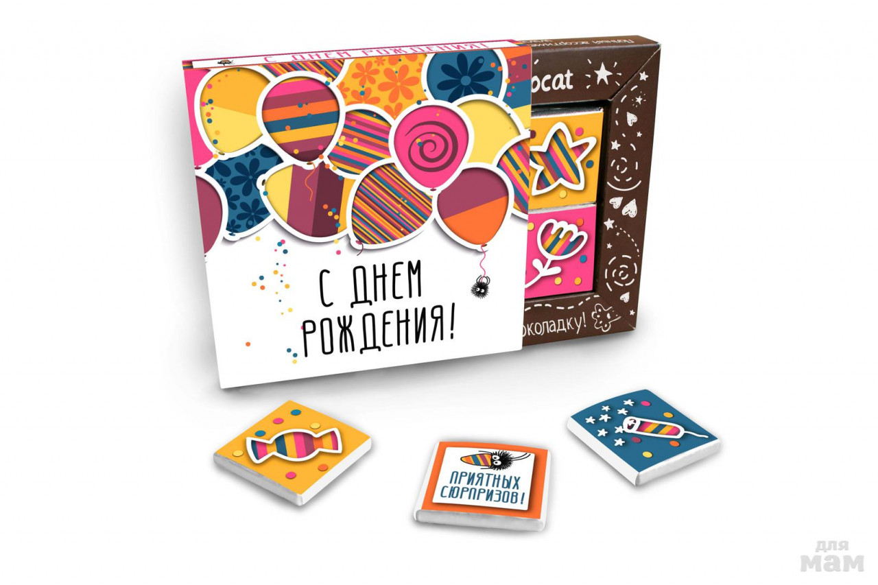 Вкусное, большое и шоколадное поздравление друга, коллеги, себя любимого. На обороте коробке интересные и полезные факты о шоколаде.