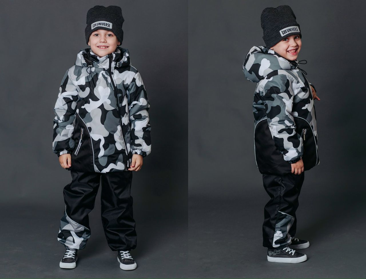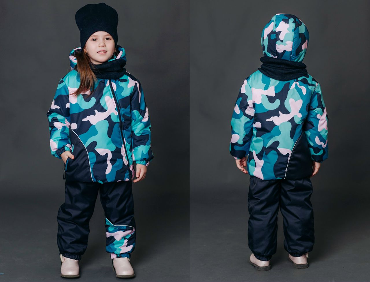 Пальто - Верх- плащевая ткань с водоотталкивающей пропиткой Утеплитель - холофан 150гр Подклад- 100% полиэстер ( воздушный и скользящий ) Брюки - верх-Мембрана Подклад - 100% полиэстер Утеплитель- холофан 100гр
