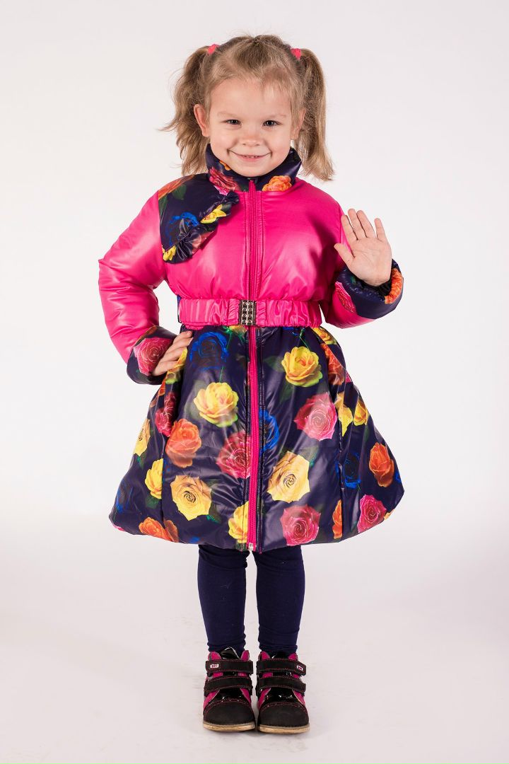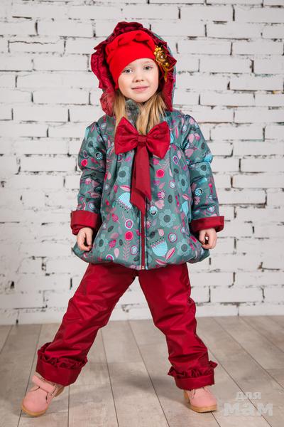 Демисезонный комплект для девочки . Жизнерадостный и яркий . Пальто с завышенной кокеткой , низ пышный и собран на сборку. Подходит девочкам разного телосложения . Перереднюю часть украшает красивый бант , который при желании , можно снять. Капюшон свободный и глубокий , на кнопках ( съемный )Рукав в форме " фонарика "с пышным манжетом . Имеются два боковых кармана . Брюки без лямок , слегка расклешенные , украшены рюшей.