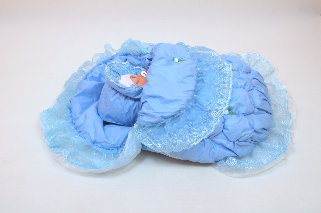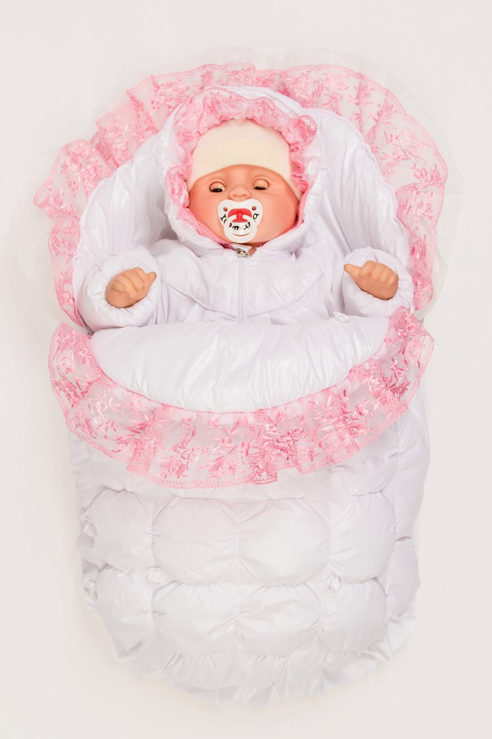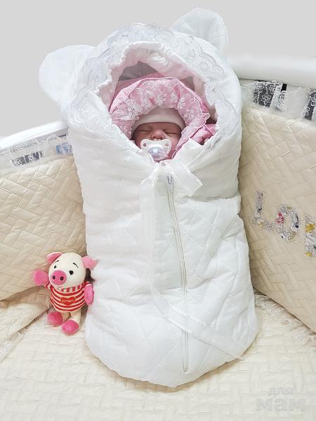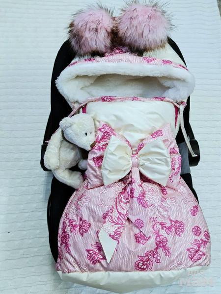 Праздничный конверт для малышей - подходит как для ежедневных прогулок, так и для любых торжеств. Украшен очаровательными цветами, объёмная стежка в виде сот, на двух молниях по бокам, удобный капюшон, ручки - при желании закрываются. Подойдет для торжественной выписки вашего малыша!
