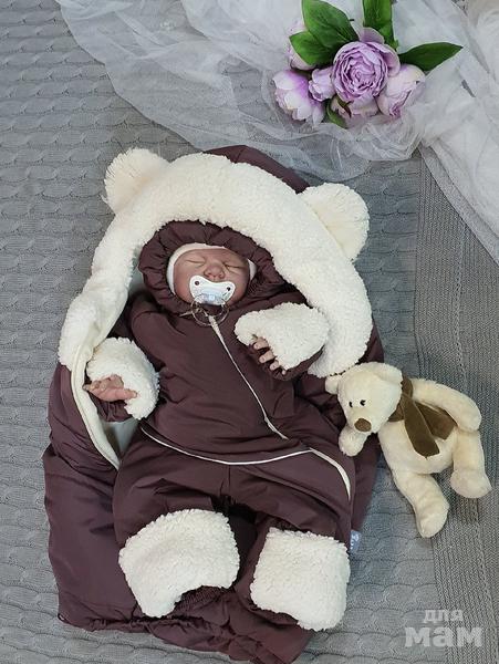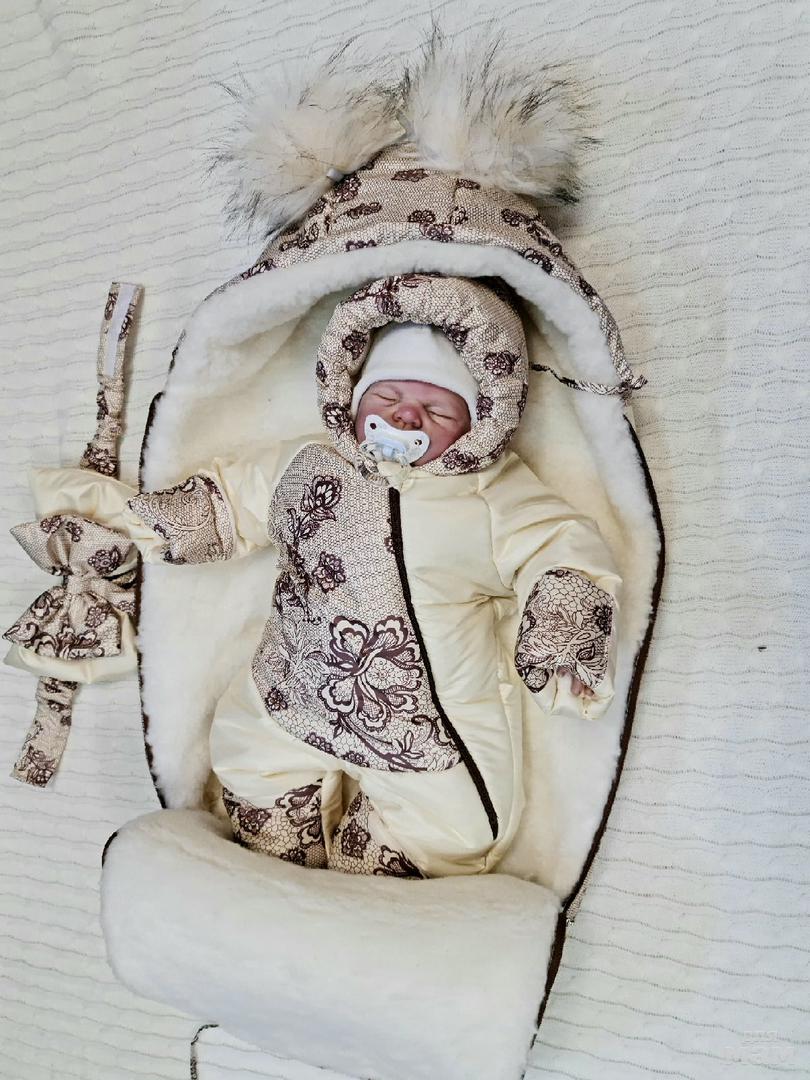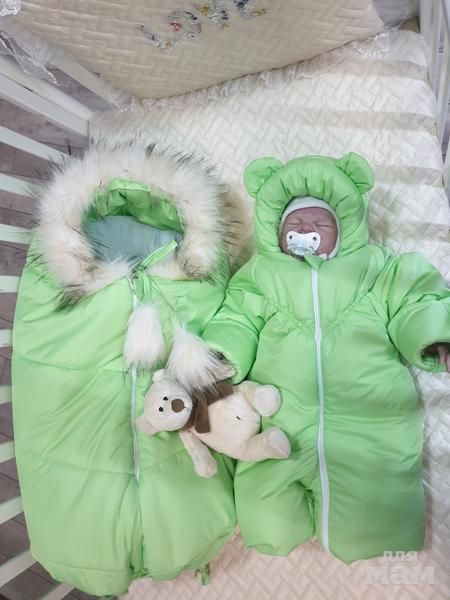 Шикарная Новинка !комплект- двойка из плащевой ткани, с отделкой из Шерпы ( нежнейший , гипоаллергенный трикотаж с фактурой " барашка") Кокон- конверт , с "возможностью роста" малыша ! Практично и выгодно. Утепление по- сезону. Вокруг личика ребенка сборка на резинку, защита от задувания! Плюс комбинезончик с " косой" молнией, что позволяет максимально раскрыть комбезик , не причиняя малышу неудобства при сборах на прогулку! Ручки и ножки закрываются отворотами, что гораздо практичнее ,чем зашитые наглухо .
