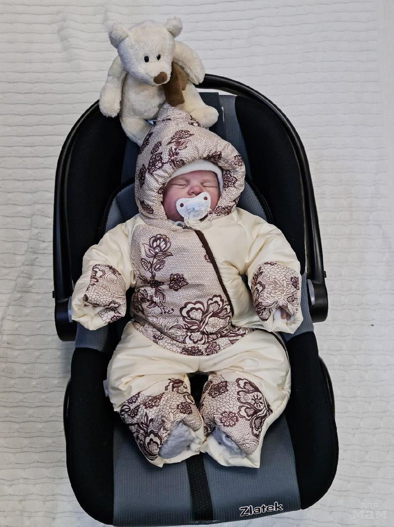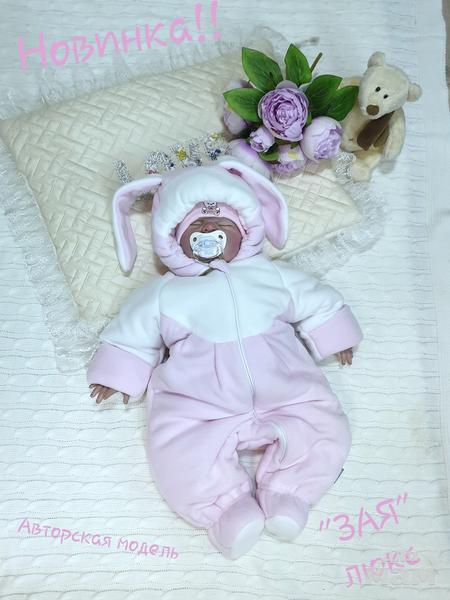Капюшон пришивной , не съемный , с очаровательными ушками , плотно обнимает личико малыша , уютный и теплый. Комбинезончик на флисе , утеплен гипоаллергенным холофаном ,имеет отвороты закрывающие ручки и ножки. Достаточно поддевы и шапочки - и ваша кроха готова к выписке и прогулке!