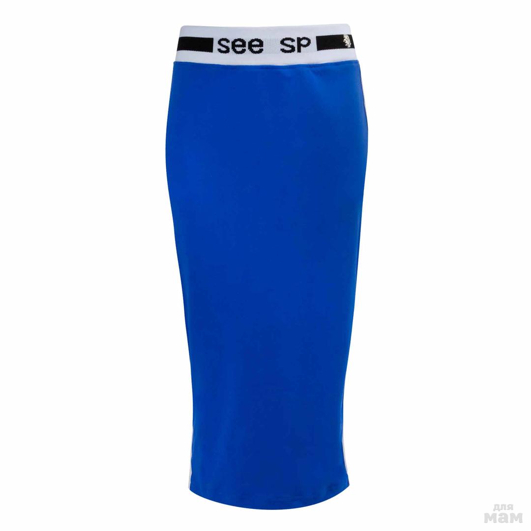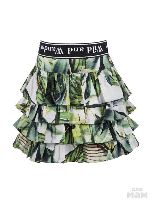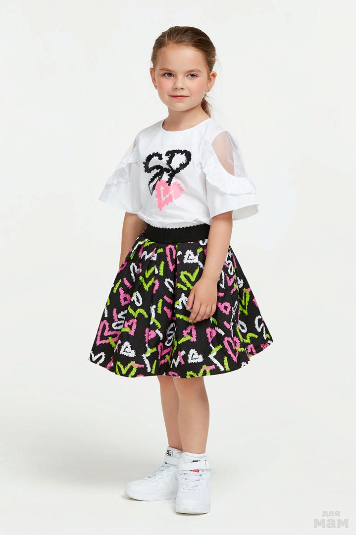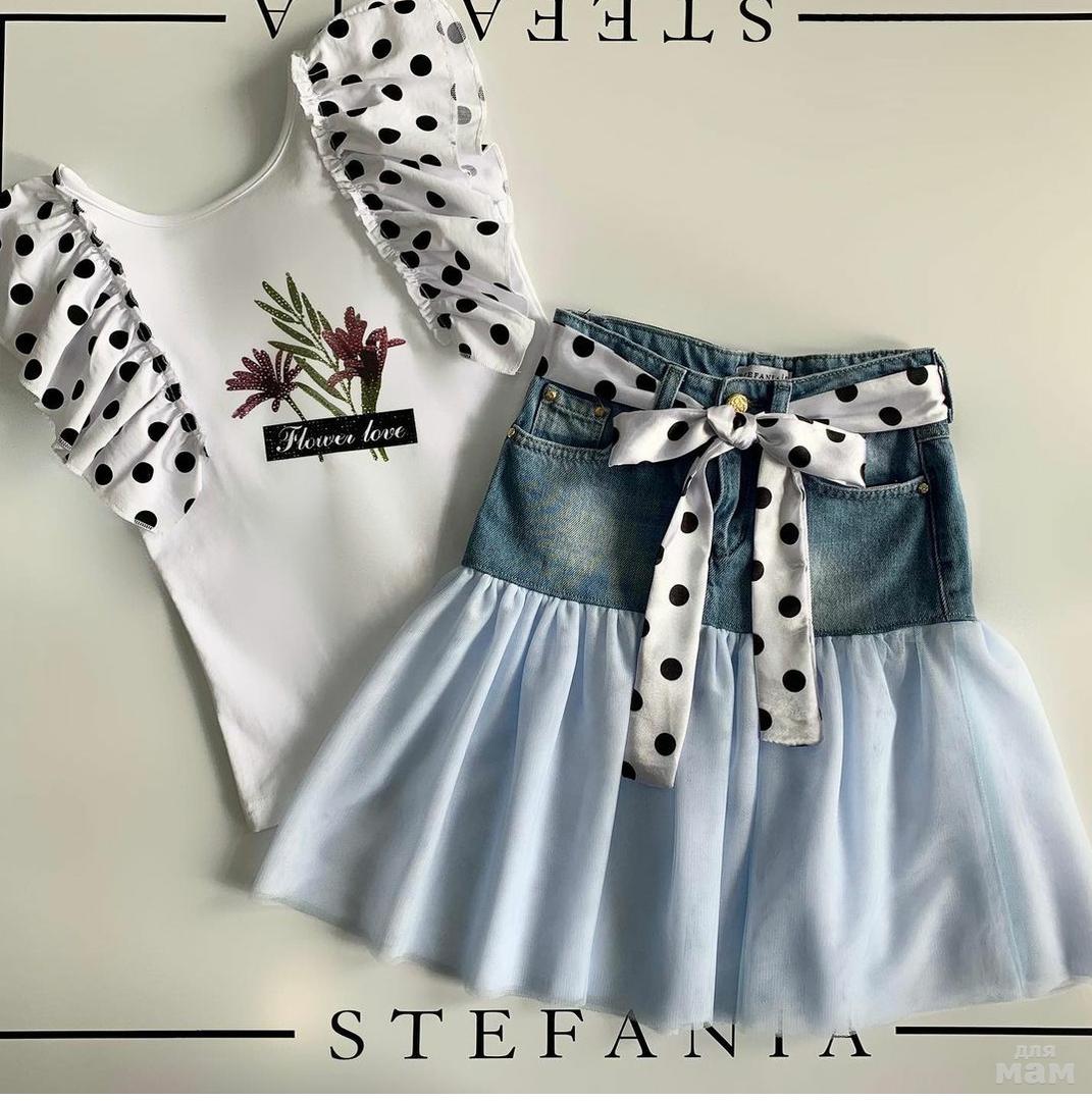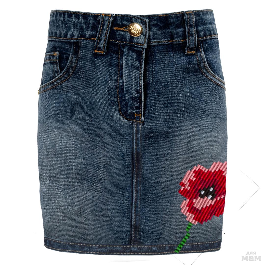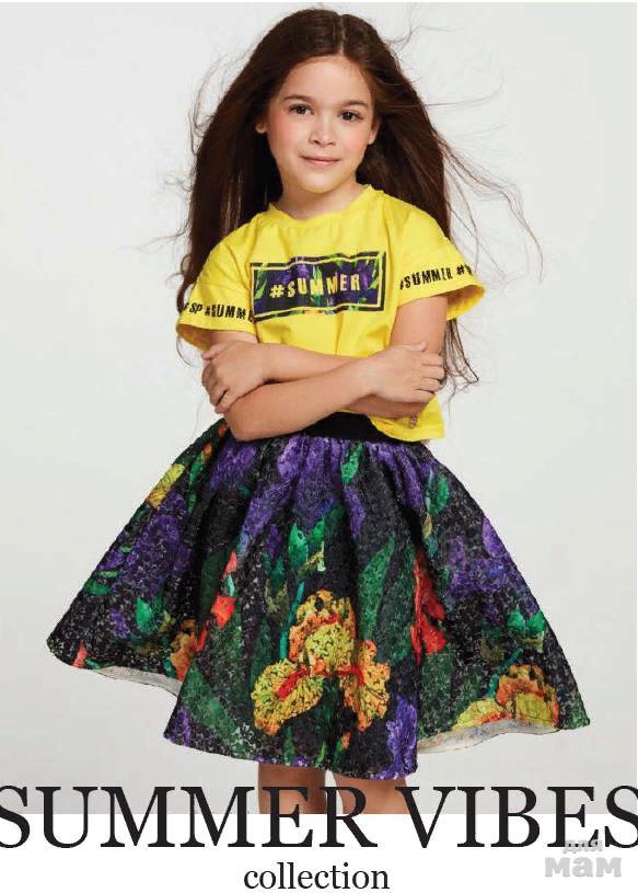 Юбка-солнце на резинке в полоску, из кордового гипюра на контрастной подкладке, с лампасами из контрастной тесьмы с надписями.