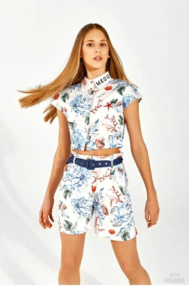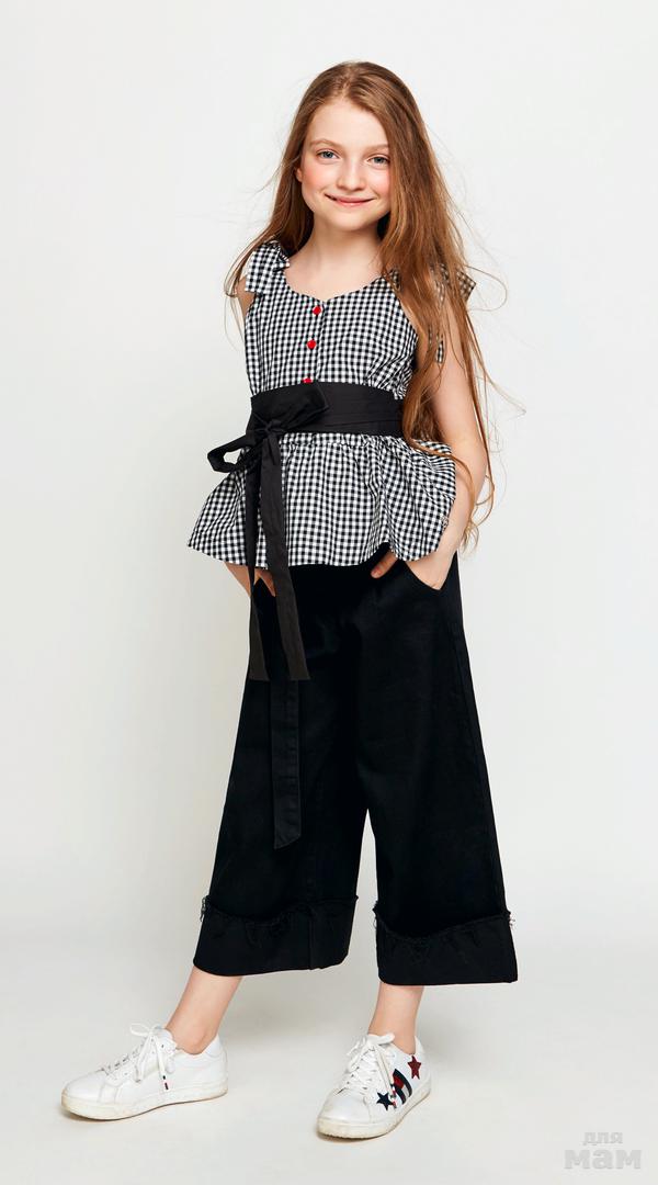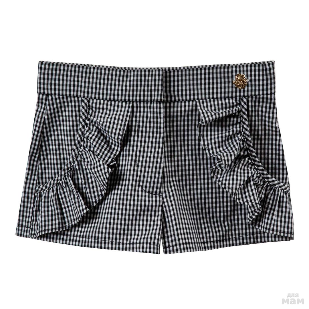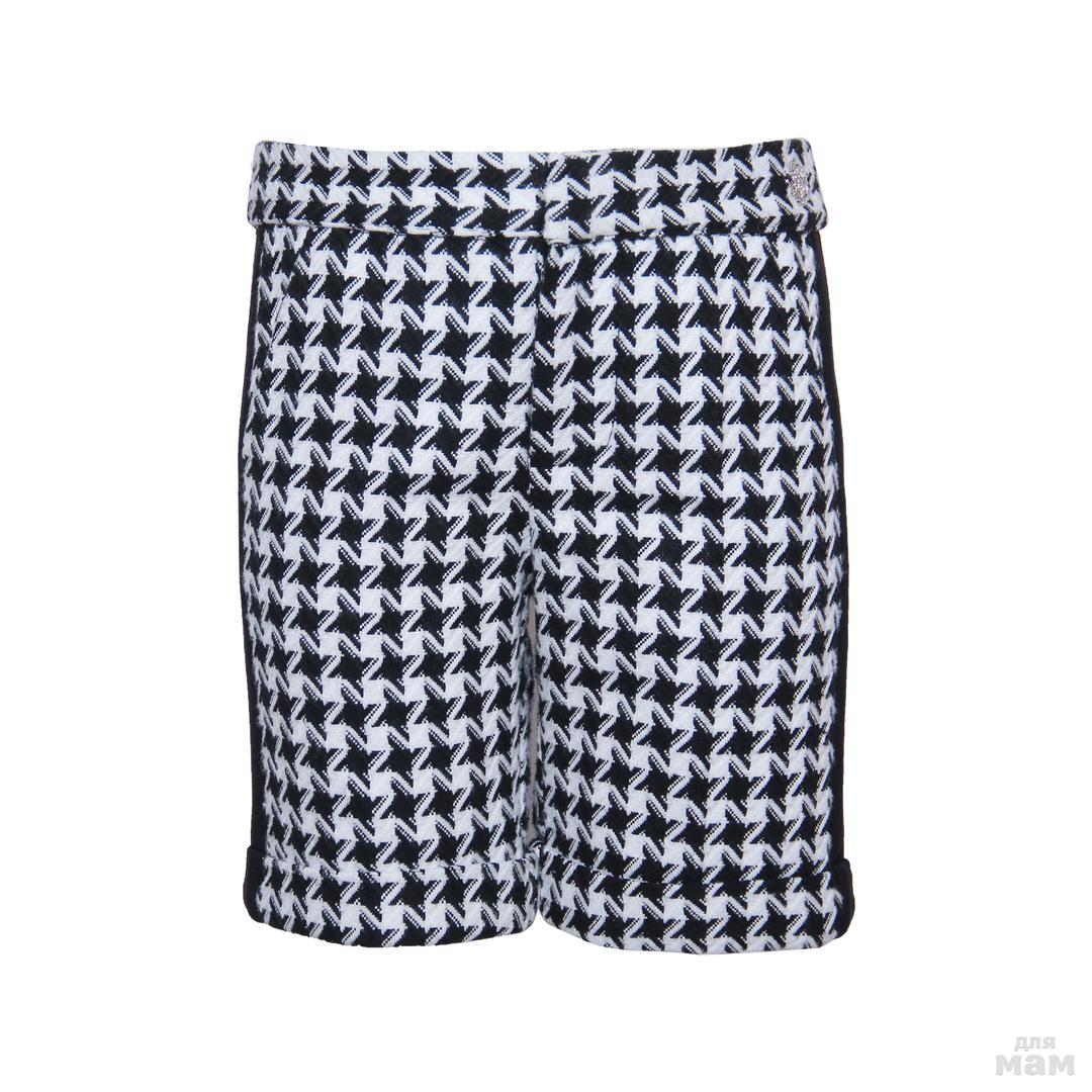 Шорты из костюмного твида с черно-белым орнаментом. По бокам лампасы из плотного трикотажа. Внизу подвороты шириной в два сантиметра.