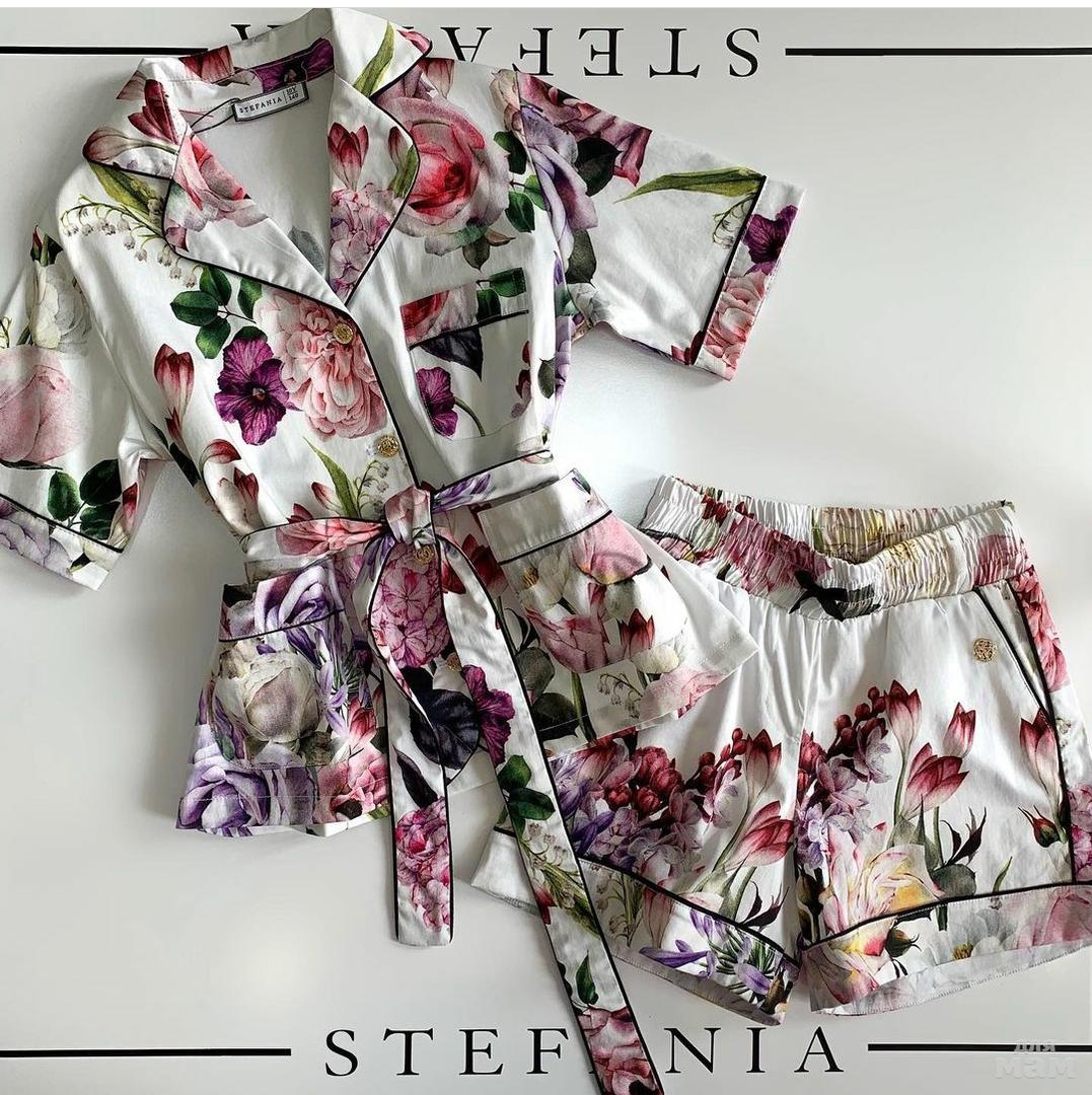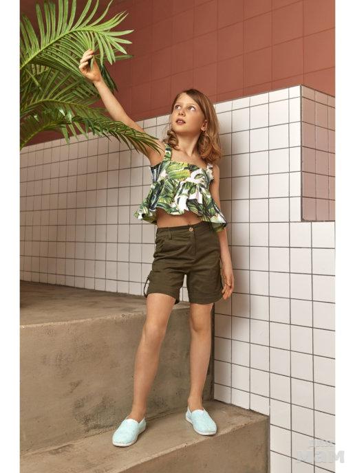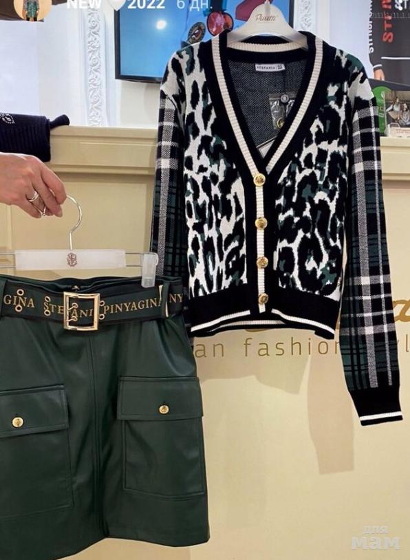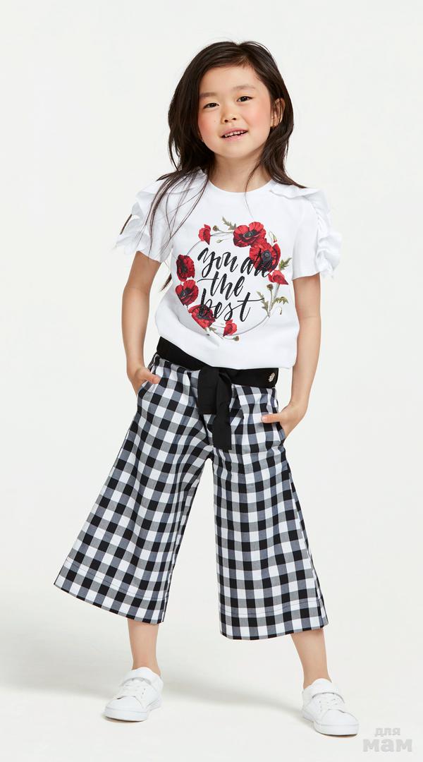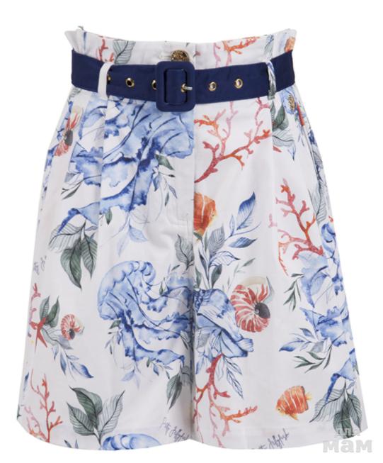 Шорты из костюмного твида с черно-белым орнаментом. По бокам лампасы из плотного трикотажа. Внизу подвороты шириной в два сантиметра.