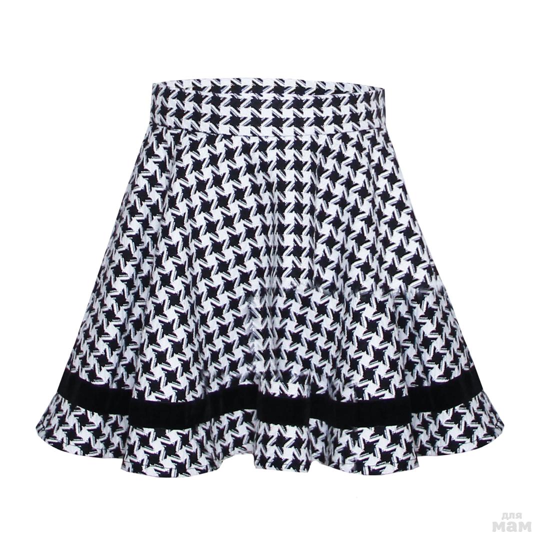 Юбка из костюмного твида с черно-белым орнаментом. Подол декорирован черной бархатной лентой. В качестве застёжки - потайная молния.