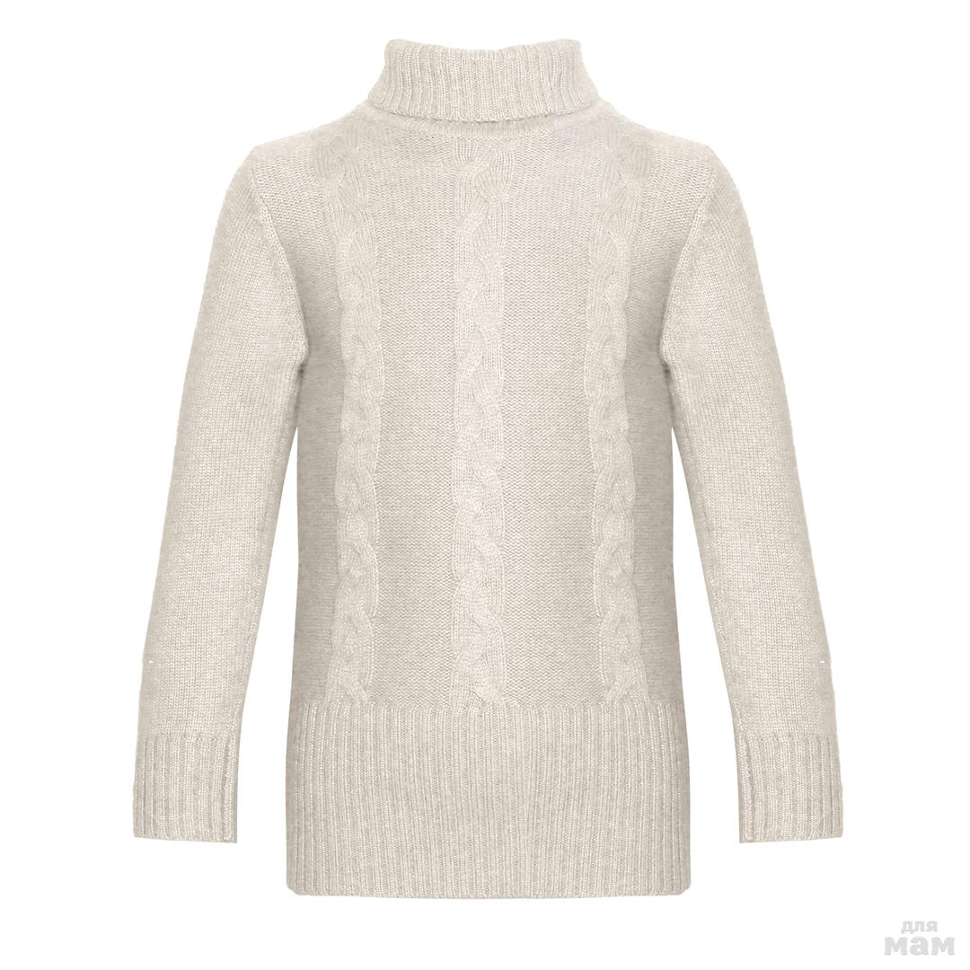 Вязанная шерстяная водолазка с узором - косичкой. Манжеты и низ изделия выполнены в виде резинки из материала того же качества.
