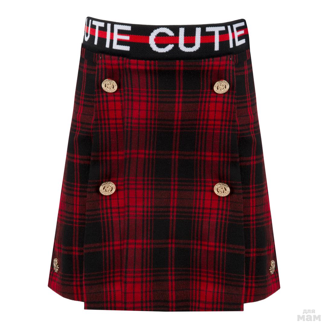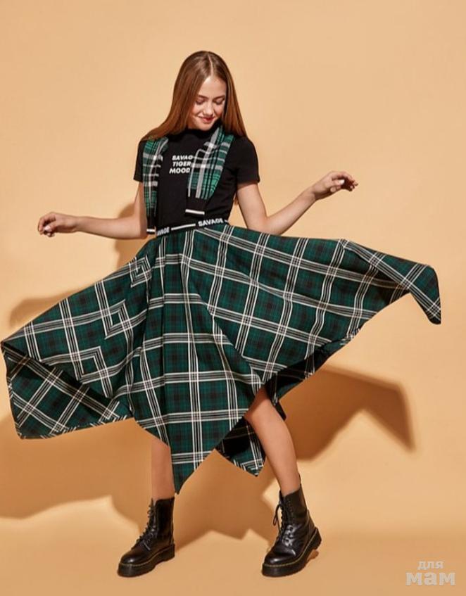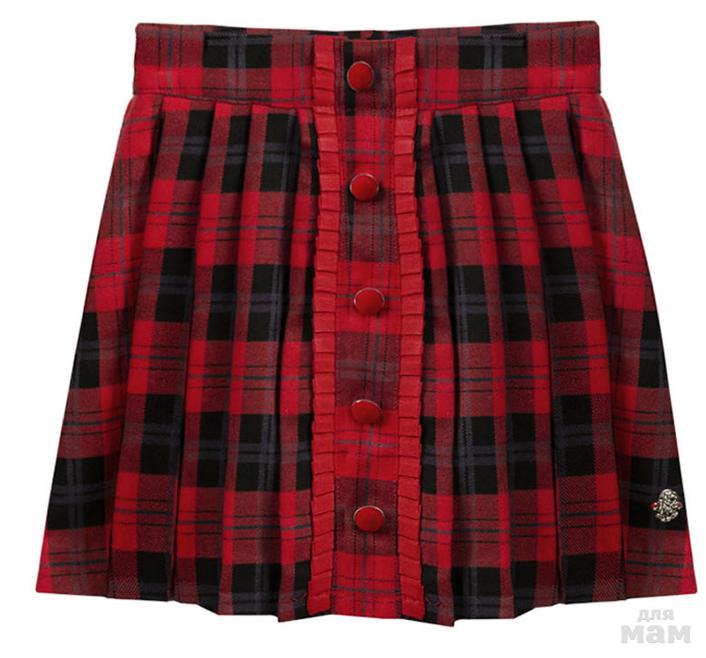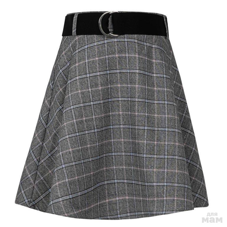Плиссированная юбка из костюмной ткани. Лицевая сторона с клетчатым орнаментом. Задняя сторона из ткани темно-серого цвета. В качестве застёжки потайная молния.