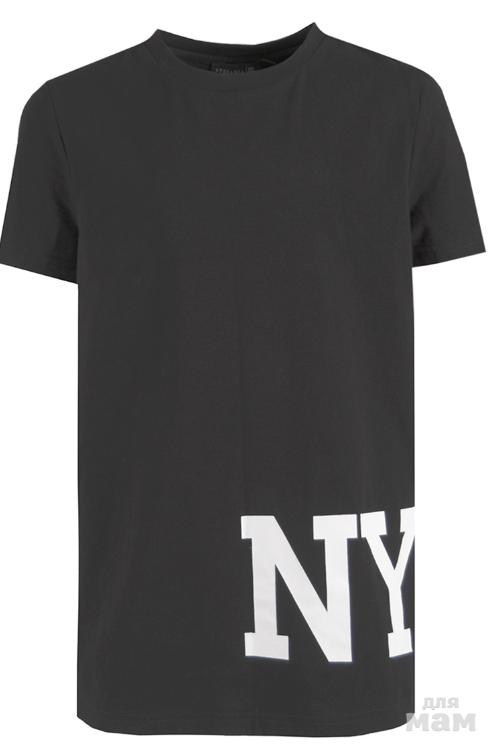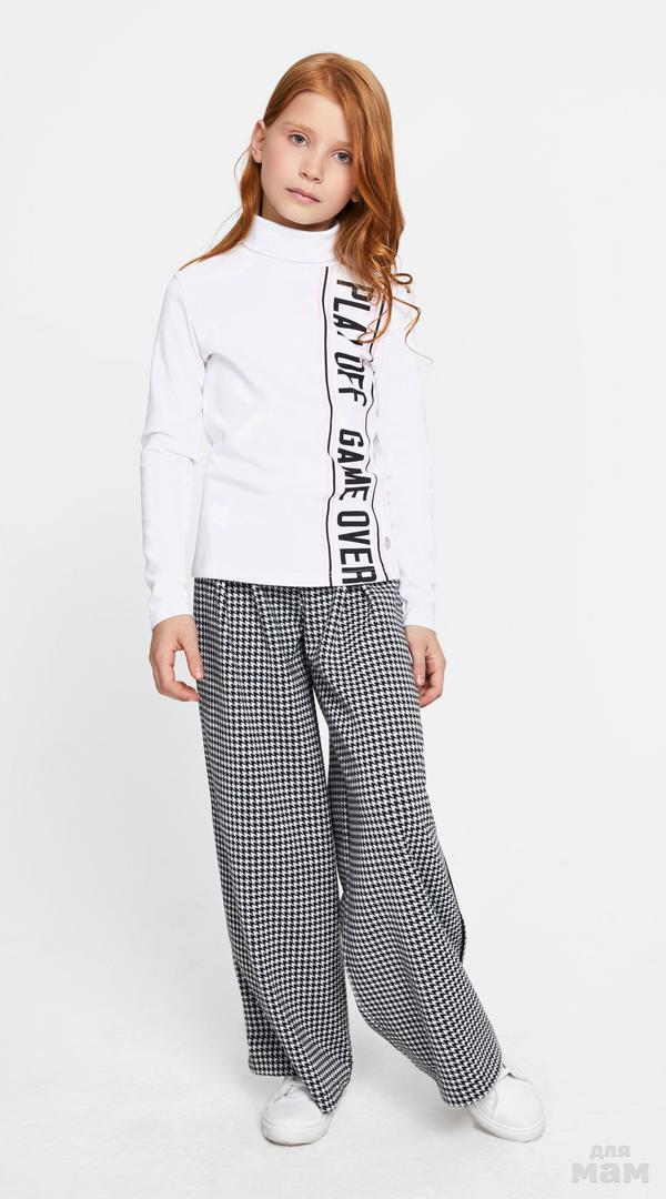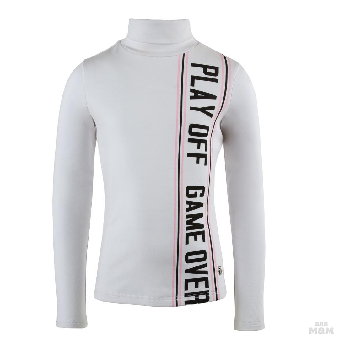 Водолазка из трикотажа, с длинными рукавами и воротником-гольф. На переде асимметричный принт в виде надписи.