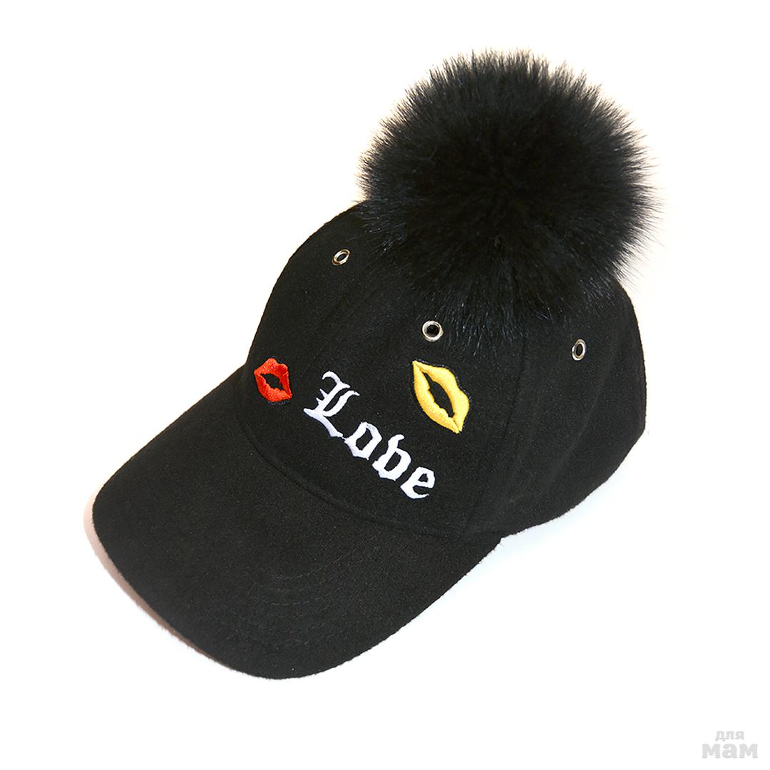 Кепка фетровая с натуральным меховым помпоном (съемный). В качестве декора используются оригинальные нашивки "губы". Сзади застежка-липучка для регулировки полноты.