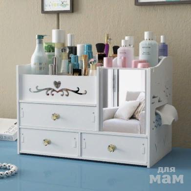 Универсальные комодики для хранения косметики, заколок и бижутерии. Комодик (органайзер) для косметики– очень практичный и стильный предмет для женских украшений, косметики и других не менее важных мелочей. Безусловно, каждая женщина/девушка мечтает о том, чтобы все ее обилие косметических принадлежностей и аксессуаров находилось перед глазами, при хранении занимало мало места и не вызывало в комнате хаоса и беспорядка. Все эти проблемы легко решает белый органайзер (комодик) с двумя ящичками! Комодик (органайзер) для косметики займет минимум места. Его можно поставить на полку, на любой туалетный столик, в случае ненадобности на время убрать в шкаф. Размер: 25.0 cm * 45.0 cm * 25.0 cm Материал: влагостойкий древесно-полимерный эко-материал. Уход: протирайте влажной тряпкой или промойте проточной водой. Сверхпрочная устойчивая к царапинам поверхность, водонепроницаемая и светостойкая, не отслаивается. Такой аксессуар позволит женщине/девушке: Сэкономить утреннее драгоценное время, благодаря чему Вы сможете посвятить его наведению своей красоты и привлекательности Убрать аксессуары и всю косметику подальше от детей и домашних животных Сократить время уборки всей используемой косметики до 2-х минут Рассортировать все флаконы, тюбики, баночки, емкости, кисти, коробочки и навести полный порядок на туалетном столике. 960 рублей