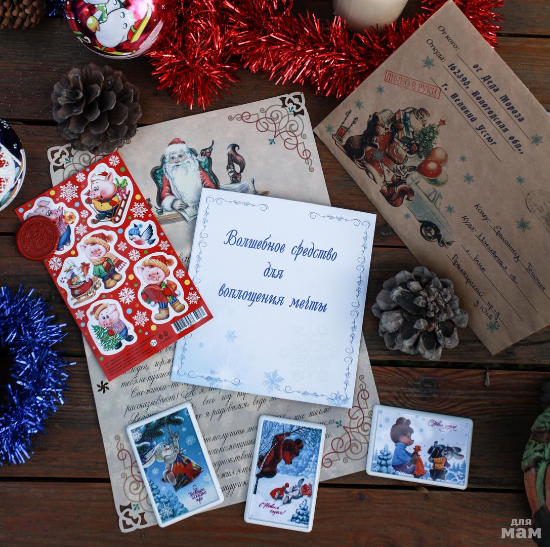 15. Поздравление Деда Мороза ПЛЮС (конверт с сургучной печатью, персонализированное письмо, магнит, исполнитель желания, заготовка для конверта) "Письмо Плюс"