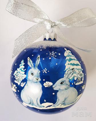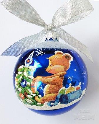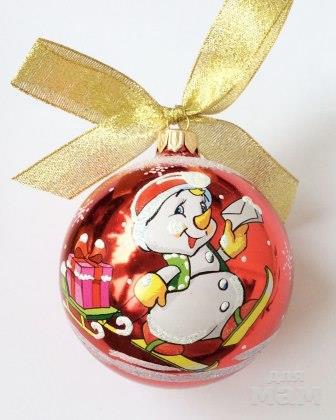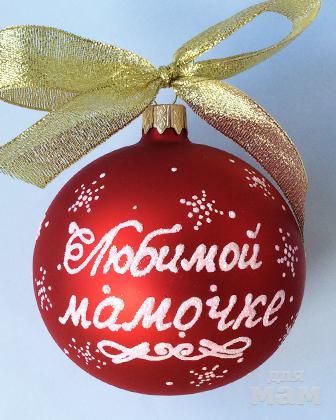 СТЕКЛЯННЫЙ ёлочный шар с пожеланием, диаметр 85 мм (+/- 3 мм) в индивидуальной упаковке (художник напишет любой текст не более 45 символов включая пробел):
