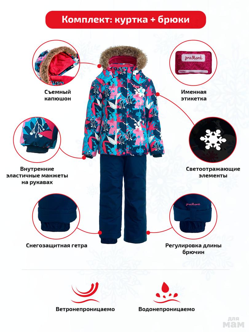 -- Полукомбинезоны с высокой грудкой до размера 6х, а с 7 до 14 лет брюки со спинкой и лямками; - Полукомбинезон имеет систему фиксации длины, защитные гетры от снега и усилен в местах истирания тканью Cordura