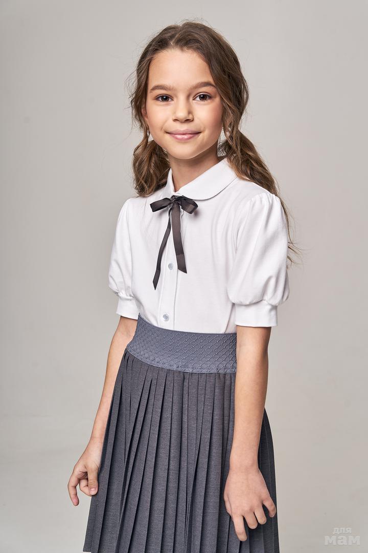 Блузка-рубашка со скругленным воротничком станет базовой моделью для любого школьного наряда и повседневного образа
