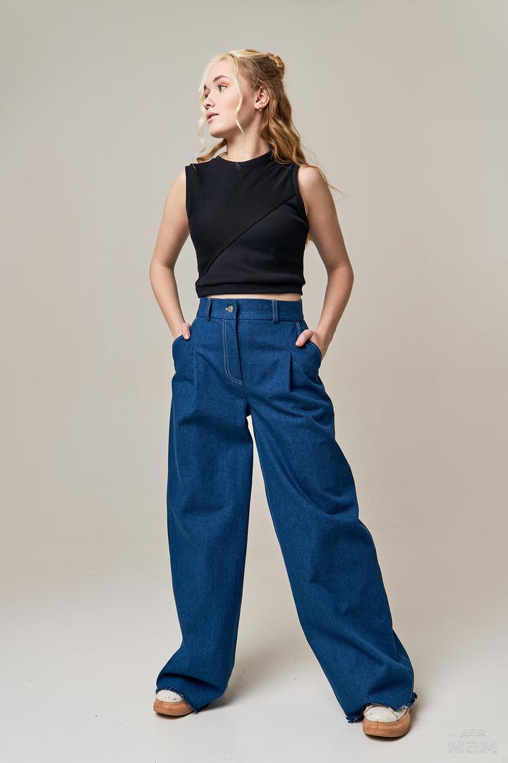 Брюки-слоучи поливискоза синий арт. 5022 цвет темно-серый