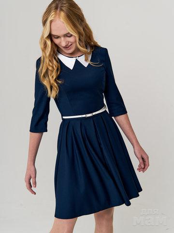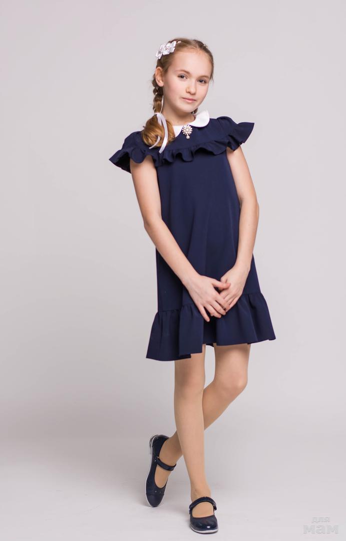 Школьное платье с пышной юбкой (может быть выполнено в темно-синем или чёрном цвете) и воротничком.